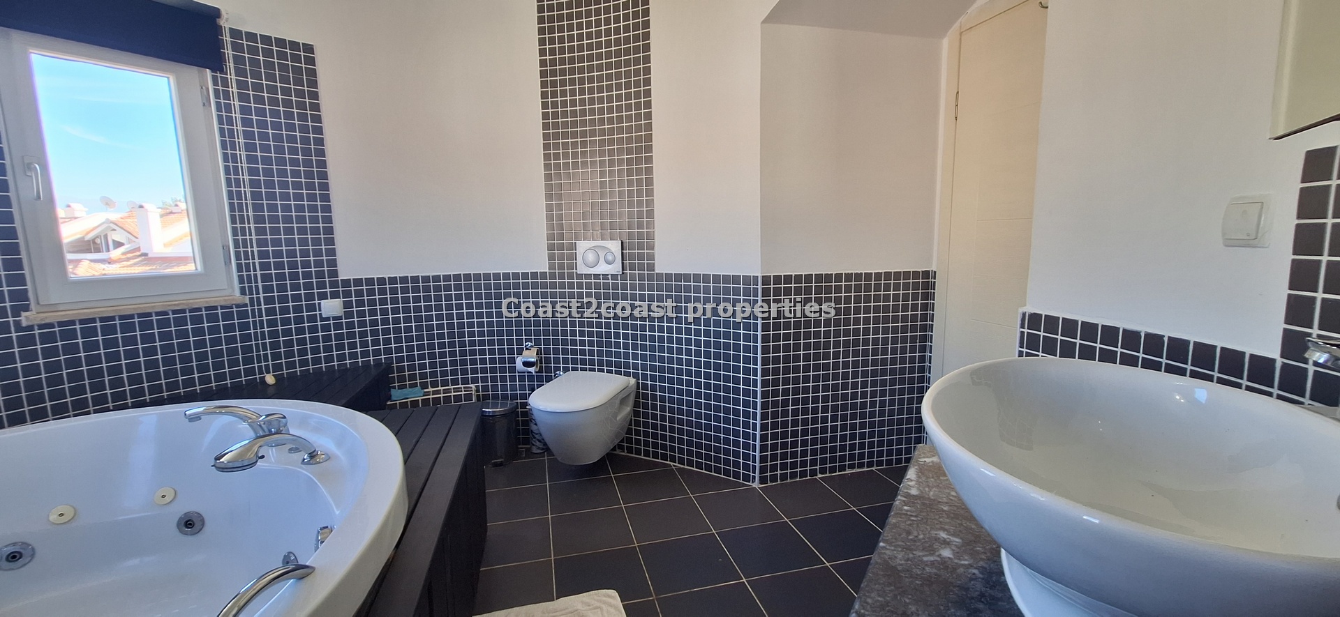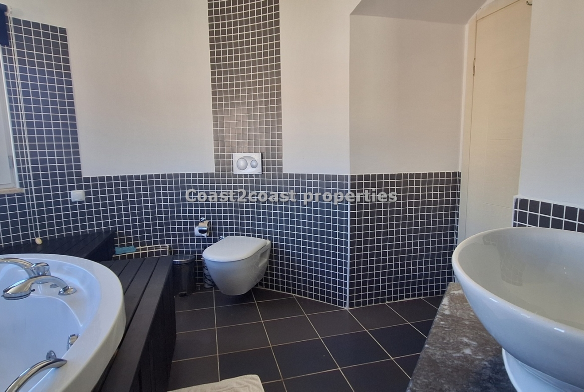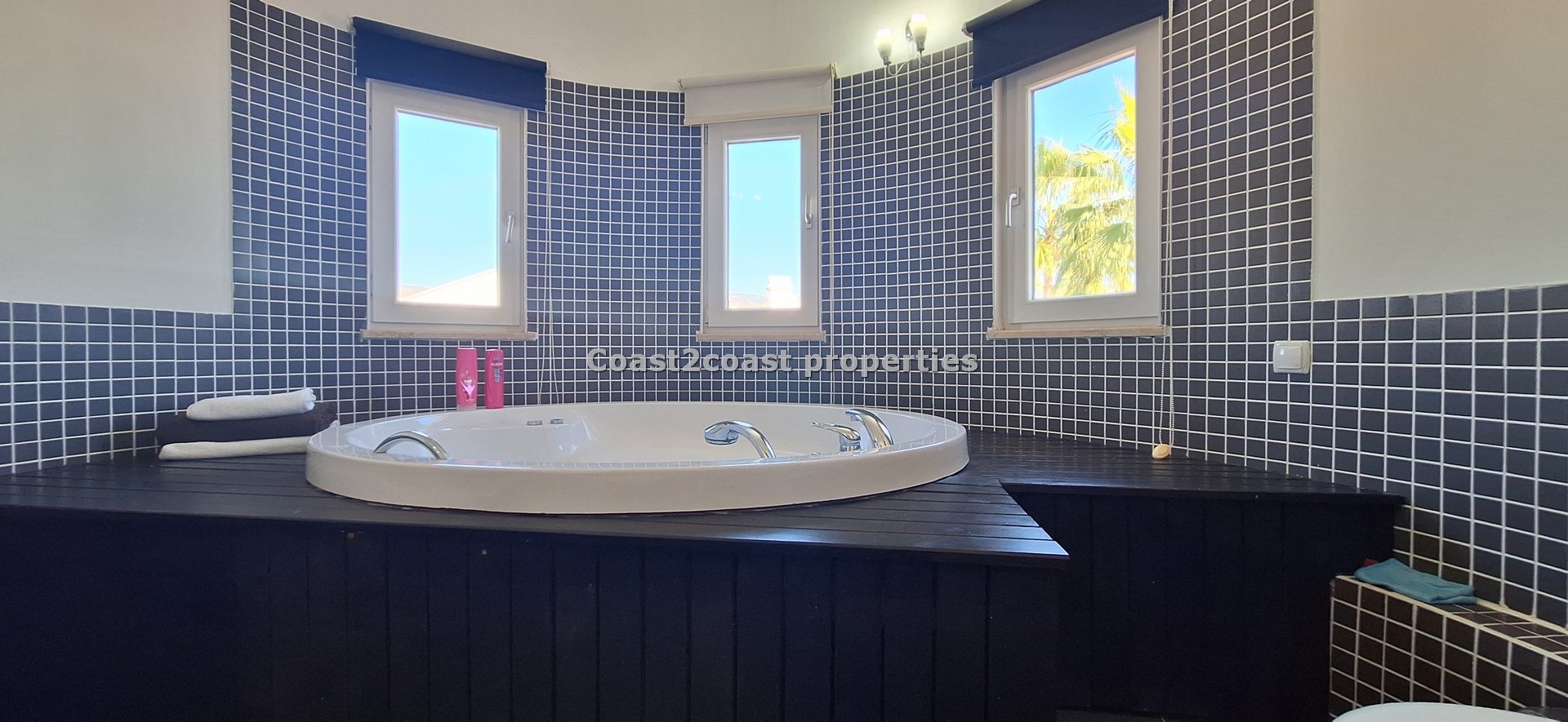 The marble staircase leads us to the top level were we have a storage room and a utility room, let’s not forget the master bedroom. Needs to be seen to really appreciate. A large room which is en suite with the most wonderful Jacuzzi room. All top quality fixture and fittings! To top this off we have a roof terrace facing south and to the beach area with wonderful sunsets.