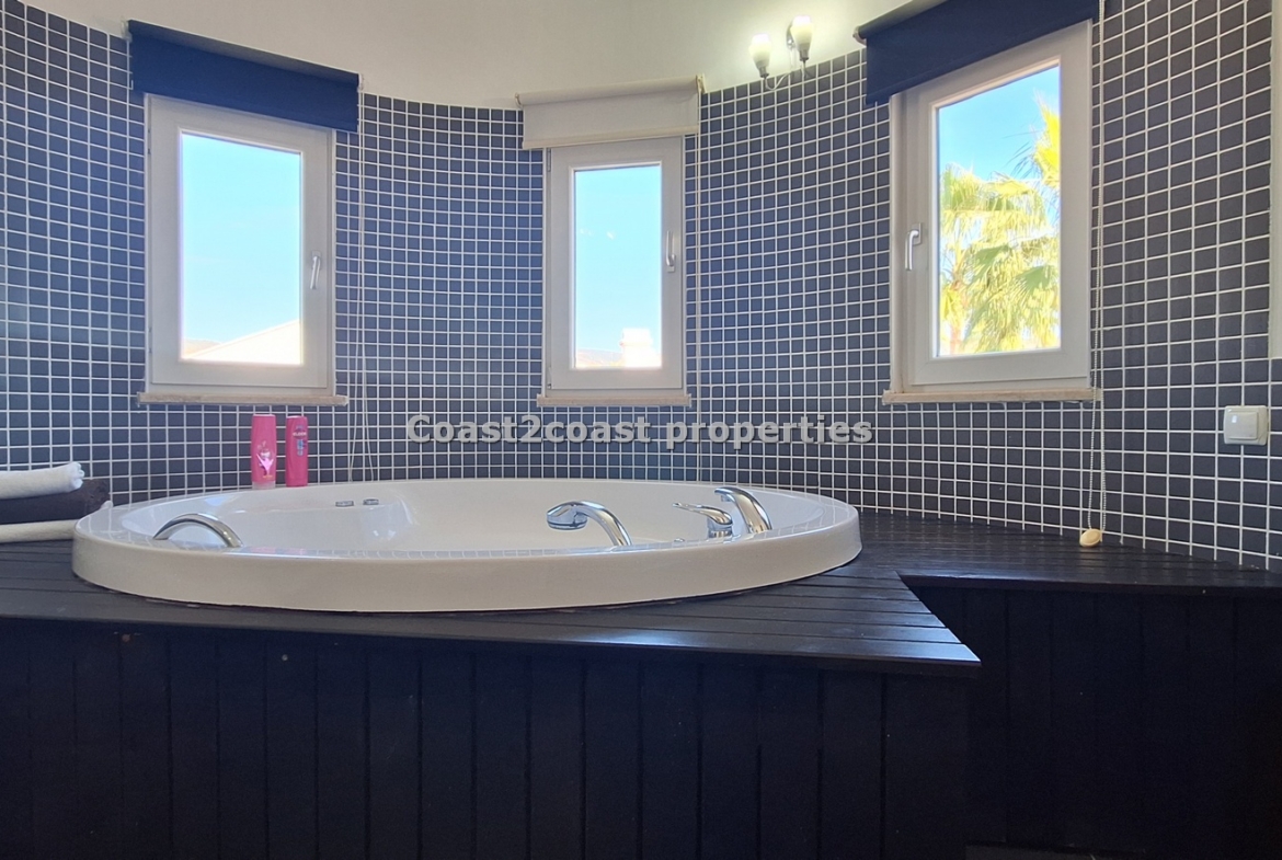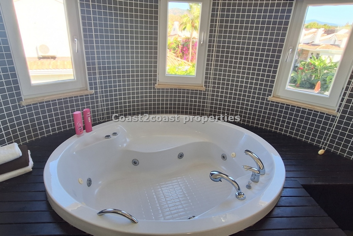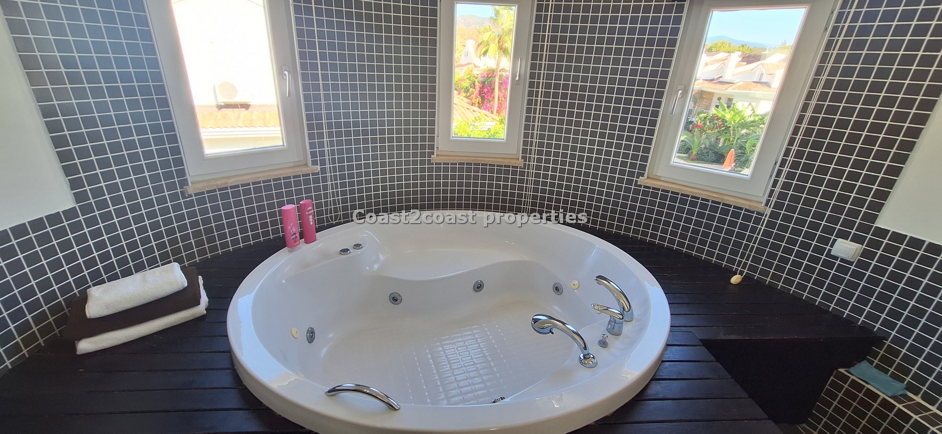 The marble staircase leads us to the top level were we have a storage room and a utility room, let’s not forget the master bedroom. Needs to be seen to really appreciate. A large room which is en suite with the most wonderful Jacuzzi room. All top quality fixture and fittings! To top this off we have a roof terrace facing south and to the beach area with wonderful sunsets.