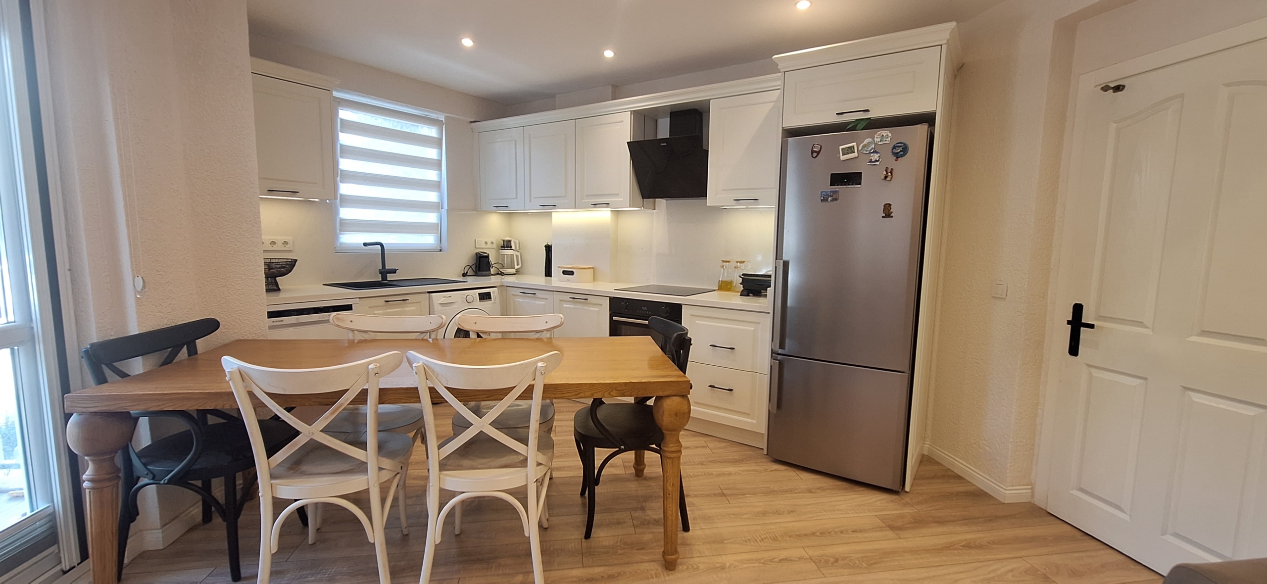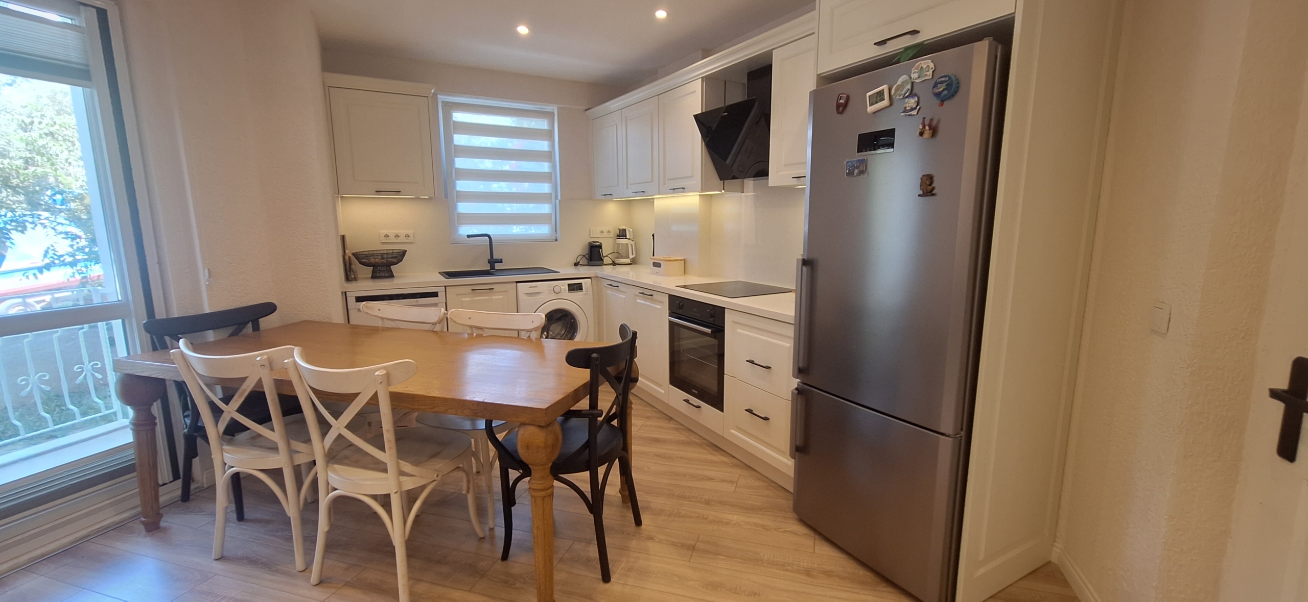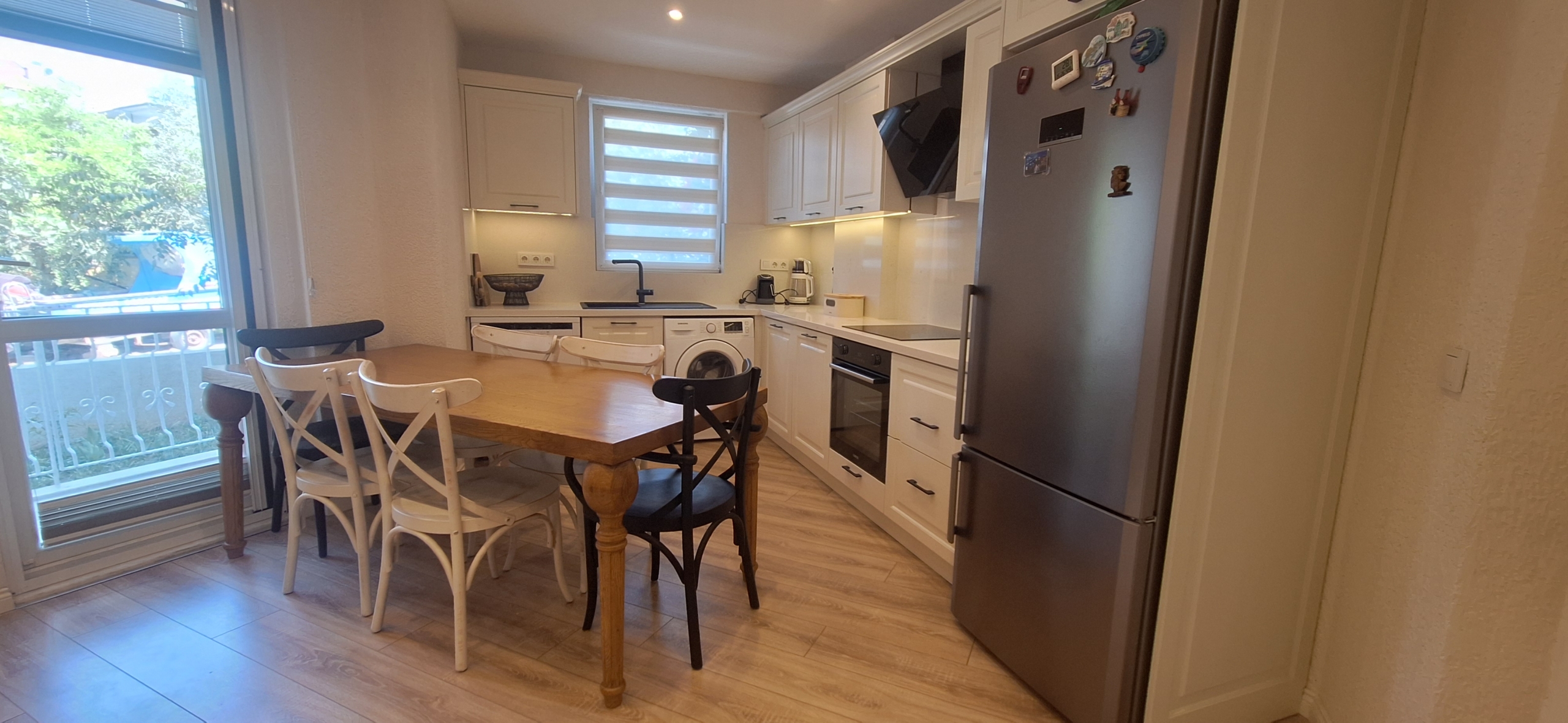 The property is a ground floor apartment. It consists of a large lounge, open American style kitchen, 3 bedrooms and 1 shared modern shower room. On entering the lounge we have great light. Wooden floors throughout this area. A large and bright space. We have a door leading to a very large balcony that overlooks the garden area.