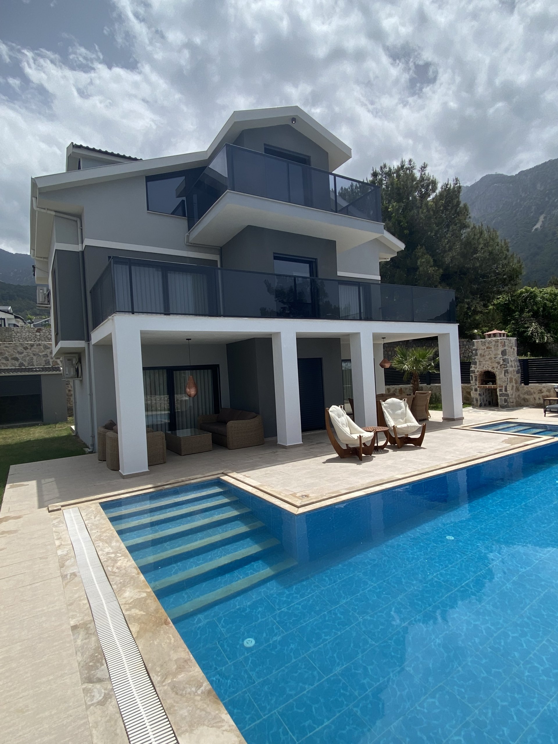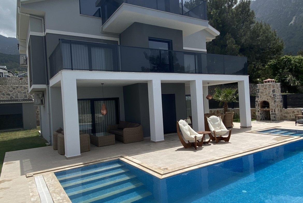 These stunning Ovacik villas for sale are 4 bedroom all en-suite detached villas are located in Ovacik. Nestled on the mountainside of Mount Babadağ, these villas enjoy panoramic views over the surrounding countryside, restful Pine Forests and in the far distance the sea view of Oludeniz. Built to a high specification these very spacious villas offer fantastic value for money and are ideal for family holidays, permanent living or to own as a rental investment property.