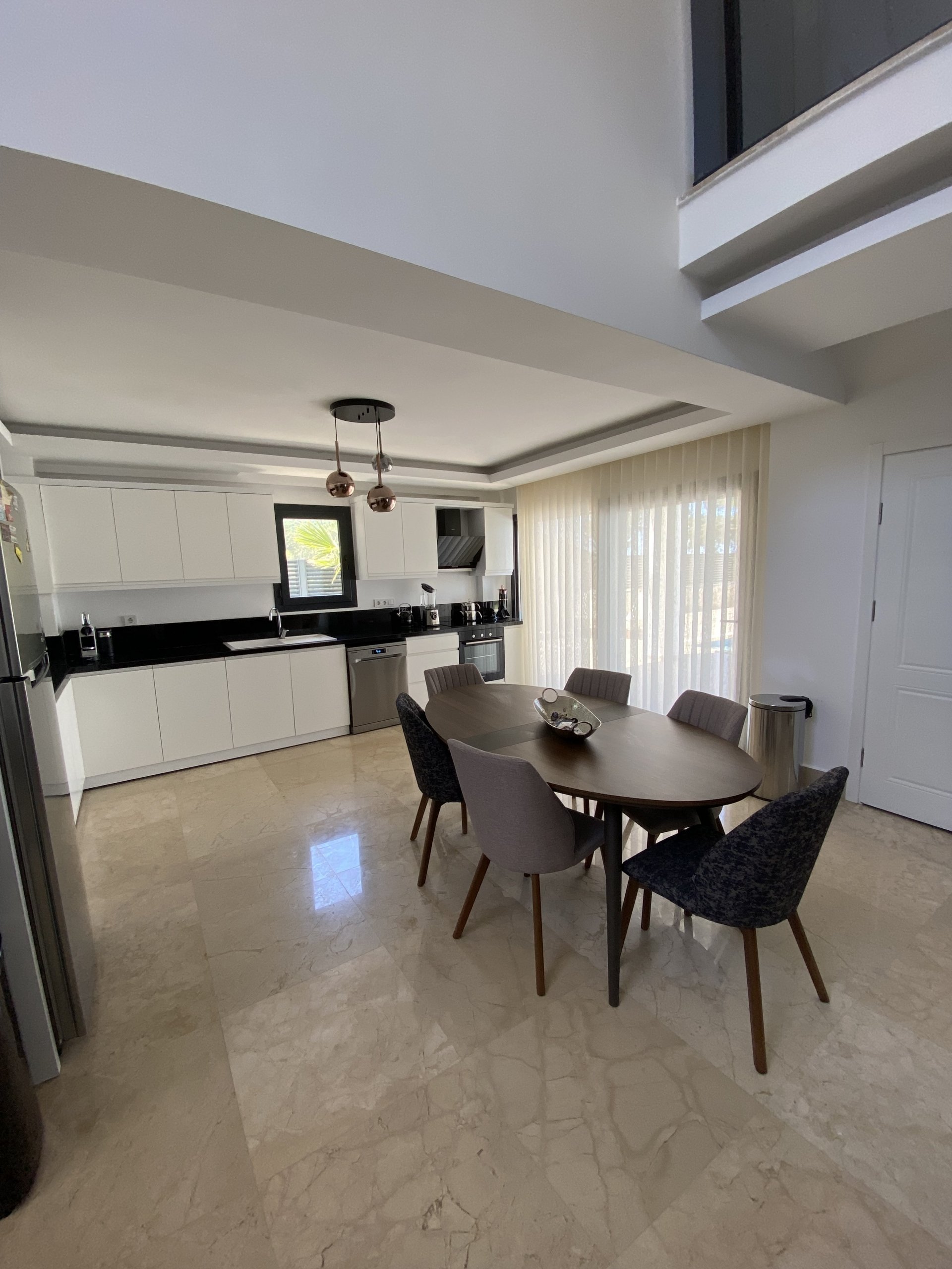 - Kitchen fitted with 1st class MDF units and marble worktops,