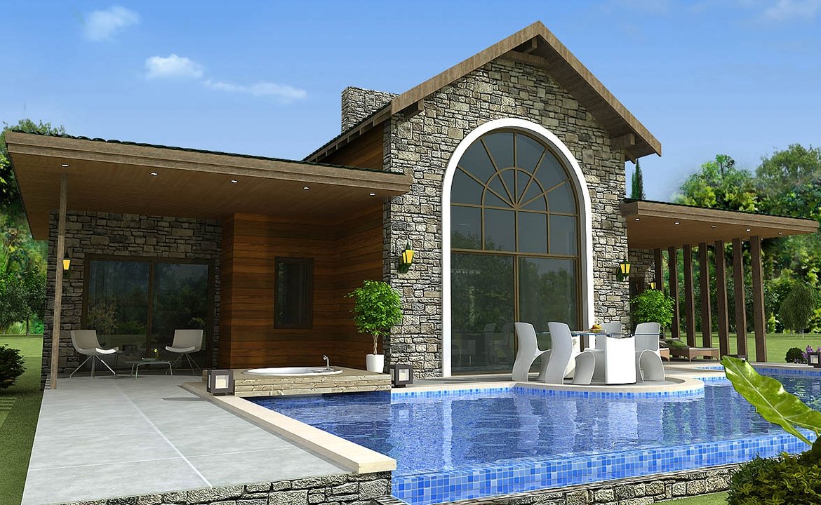 • Marble floor is surrounding the swimming pool.