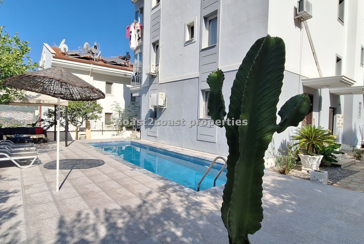 We offer you today this stunning TURN KEY property in Fethiye. Ready to go! Coming fully furnished 2 bedroom apartment with a shared swimming pool.
