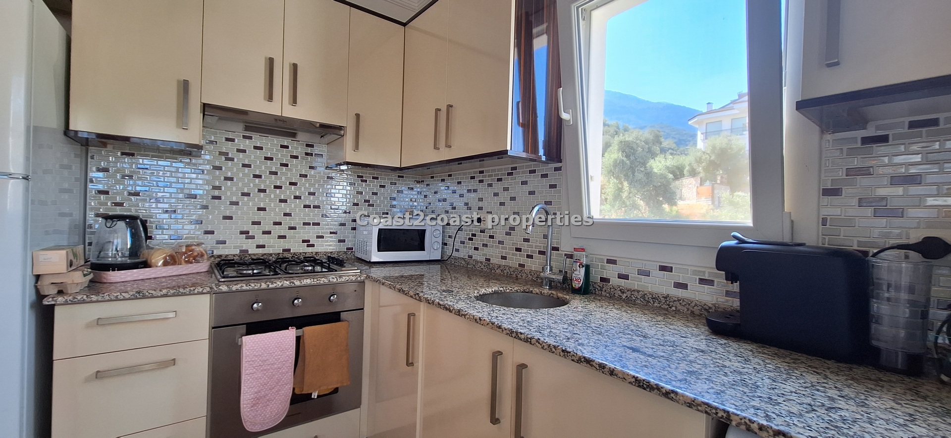 Fethiye is open all year. Some Turkish resorts close up but not this beautiful town. Its thriving winter time also , so it is a great investment if you are looking for a property you can use at anytime! The property is elevated but not too high so it is very easy to get to. There is also a local bus that takes you to the city center in about 15 minutes. The town is beautiful with a great promenade, Marina, Parks, Old Town, Shopping Mall and is quite the picturesque town.