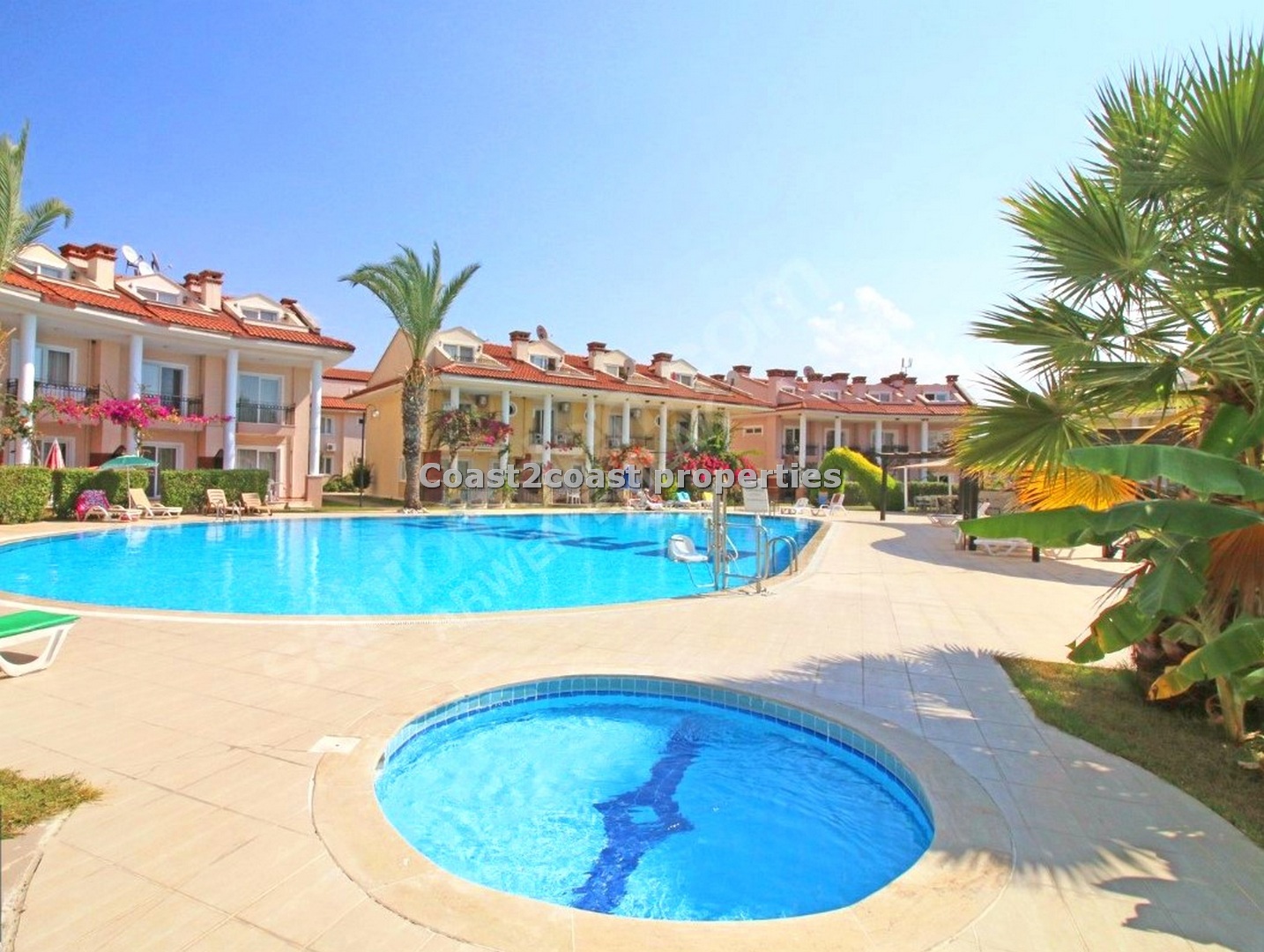 As stated it is in a green area yet very close to the 2 major resorts of Çaliş and Fethiye and is only 45 minutes from the nearest airport. The local bus runs frequently from here taking you to both resorts. The complex boasts , villas, Bungalows, apartments and Town houses. The site is gated with 24 hour manned security at the gates. Can you believe their are 5 swimming pools! Depending on what location your property is will dictate what pool you would use, but you have the choice of using them all. Right next to the Oasis Platinum Apart are 2 large pools and a children’s pool.