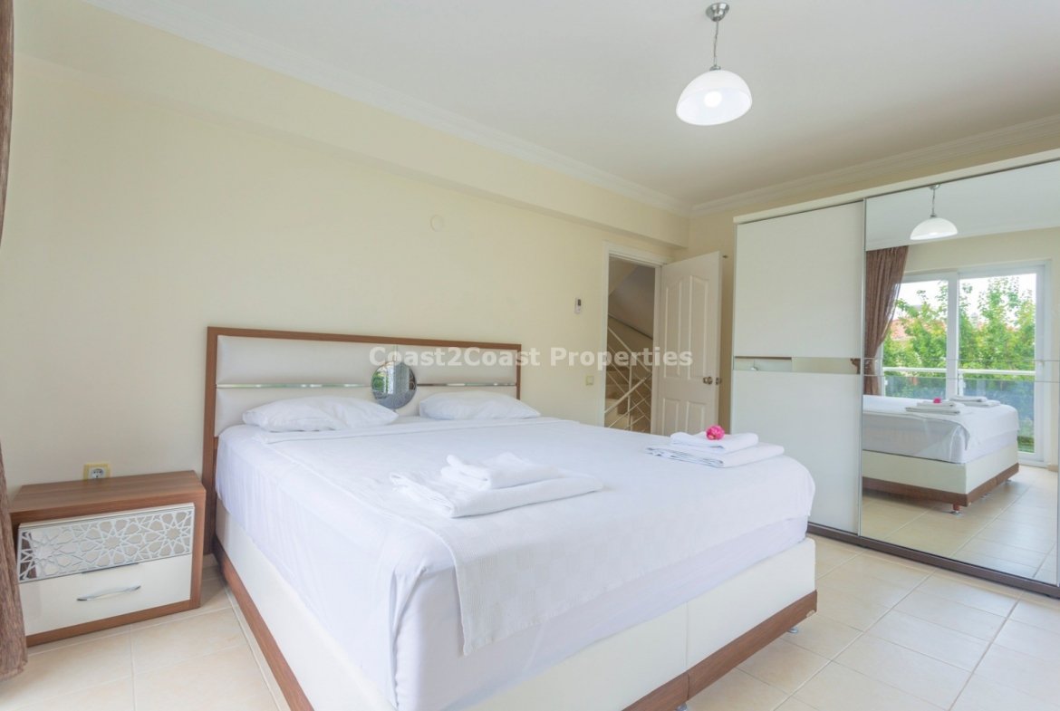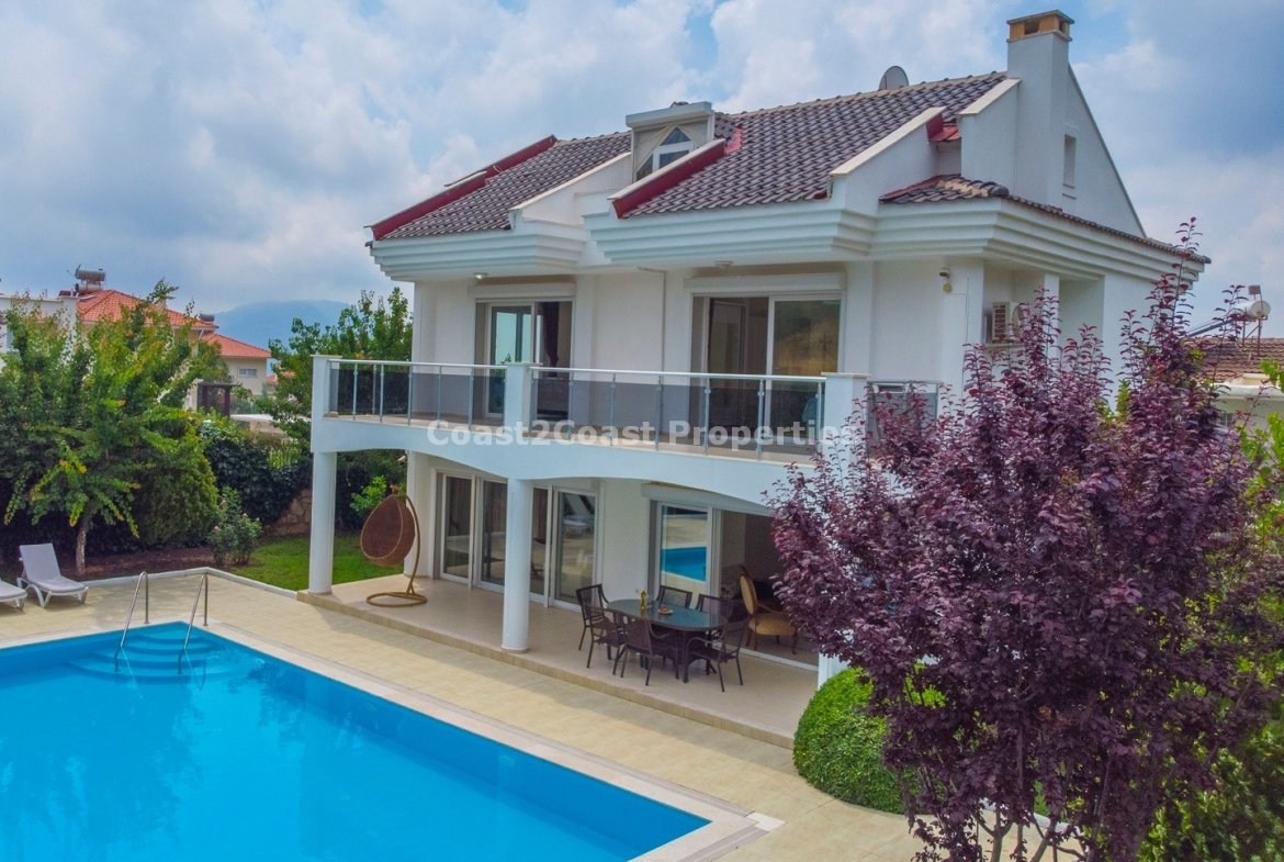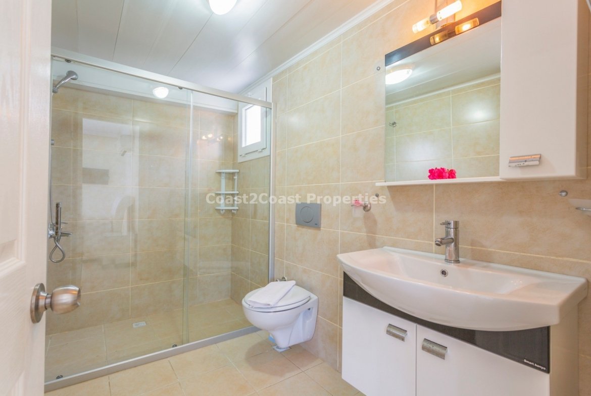 It has a large plot of land which is larger than most in this area of 750ms with a private villa and pool. The property is excellent and in great condition. The outside is fantastic with a great feel of space! Properties in Ovacik are fast becoming more popular and now is a great time to make a property investment in Turkey as the foreign currency is good to the Turkish lira and you still get great value with a high specification property.