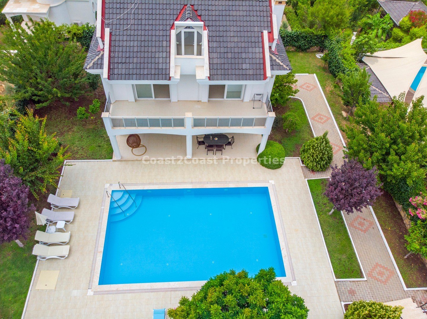 The paradise villa is in Ovacik and offers wonderful mountain views. Villas for sale in Ovacik are mostly stunning and this property is exactly that.