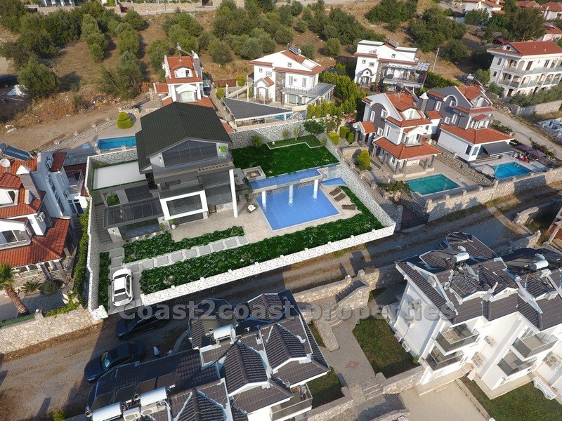 Set between the town of Fethiye with it’s beautiful parks, Marina , promenade and Historical buidings and the beach resort of Oludeniz with the most photographed beach in all of Turkey only 10 minutes from this property. On the hill over looking the hills and valley and of course the sea view in the distance. Hisaronu which is a lively resort with clubs, bars and restaurants on every corner again 5 minutes away. Ovacik with it’s stunning aquapark is only 5 minutes away also so a great location.
