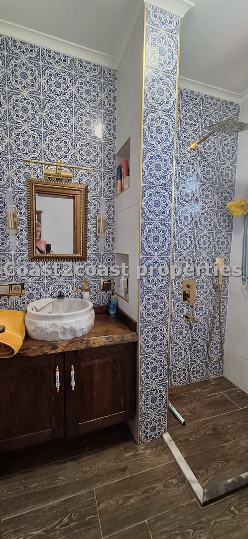 The kitchen is new modern and again complimenting the villa. Focal point being the island with a black marble surface giving lot’s more worktop space but also lot’s more storage space. The doors are sleek, modern and just so much imagination has gone into the storage space that is here. The kitchen size is large regardless but just a fantastic use of space by the architect!