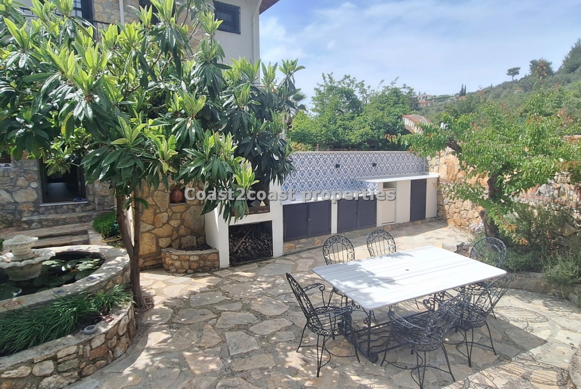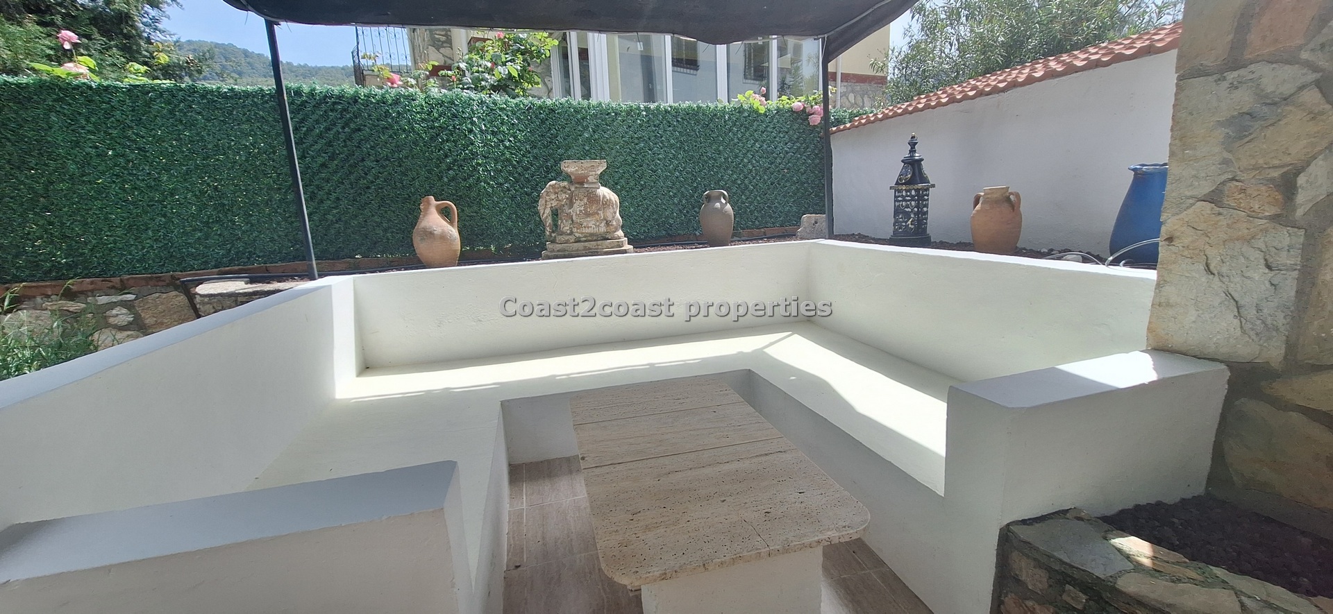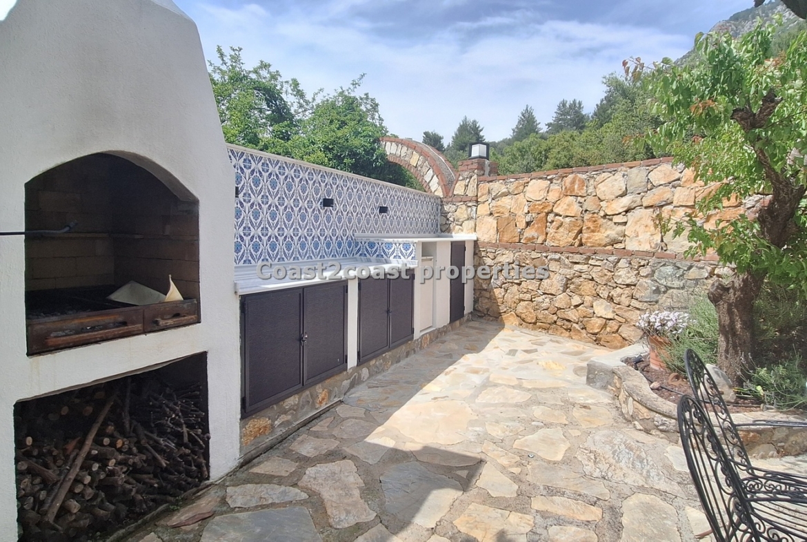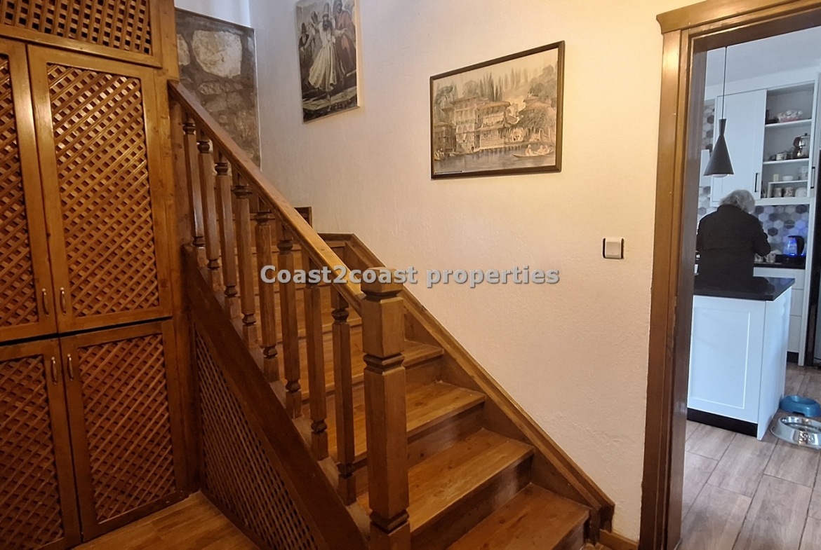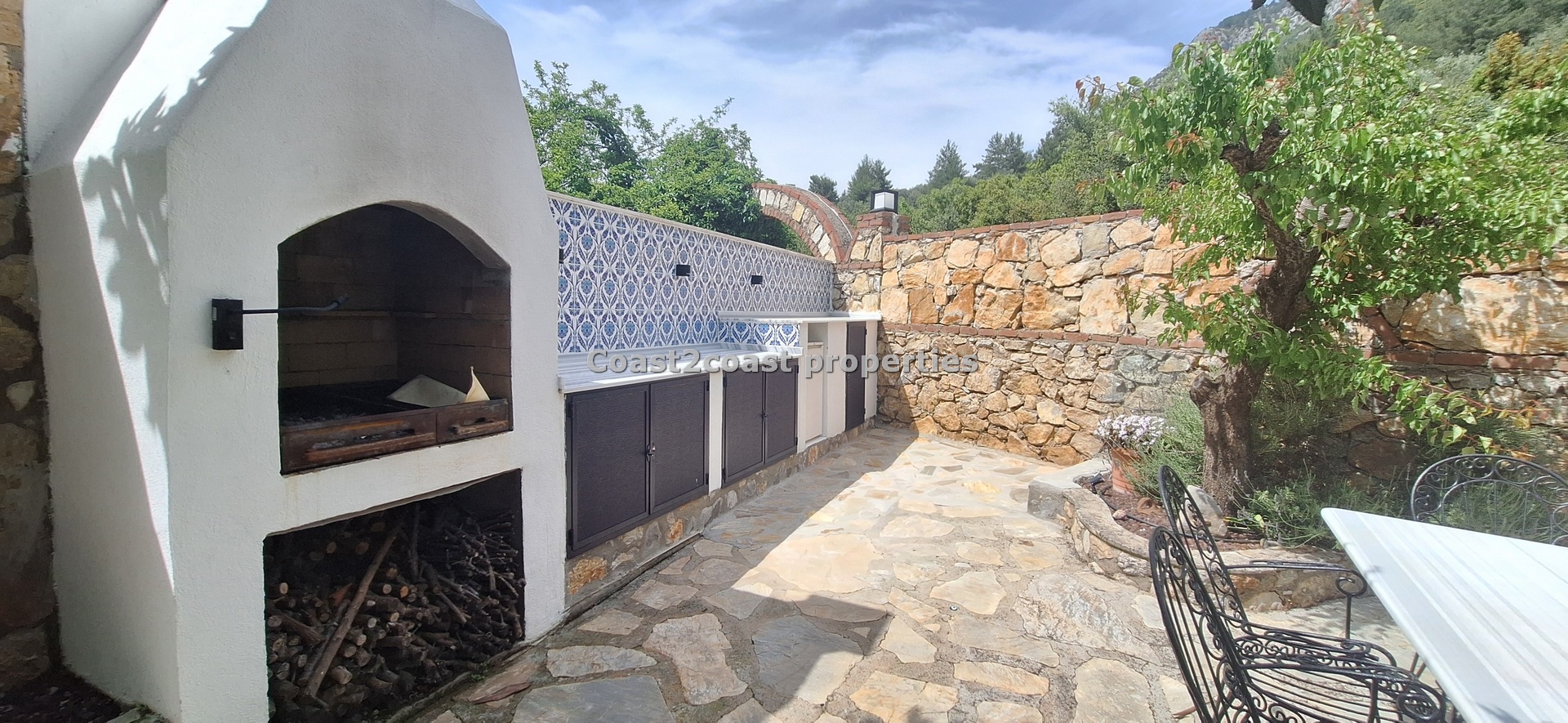The villa is partially stone built with only 1 owner. The entrance has that real country house feel. The first thing that will catch your eye is the wonderful wooden staircase taking you to the upper floor. We pass this and enter into the lounge, kitchen and dining room areas. The lounge walls are stone keeping in fitting with the property. The floors look wooden throughout but are actually wood effect ceramic. The whole ground floor has had a full modern renovation. We have adjacent to the lounge a large dining area with table and chairs plus a large dressing table. Again the interior walls are real stone. The dining area and kitchen are really beautiful.
