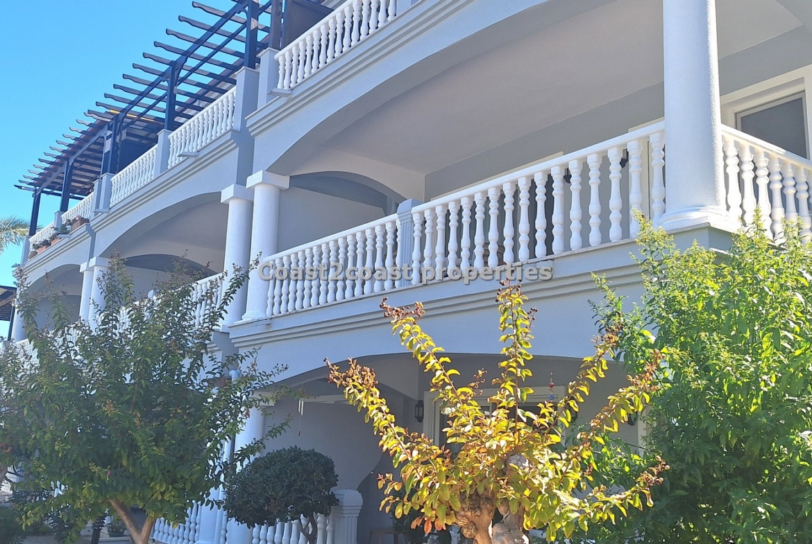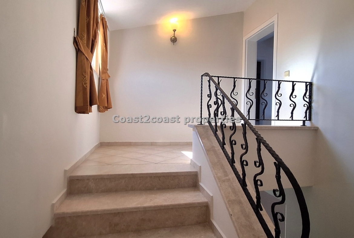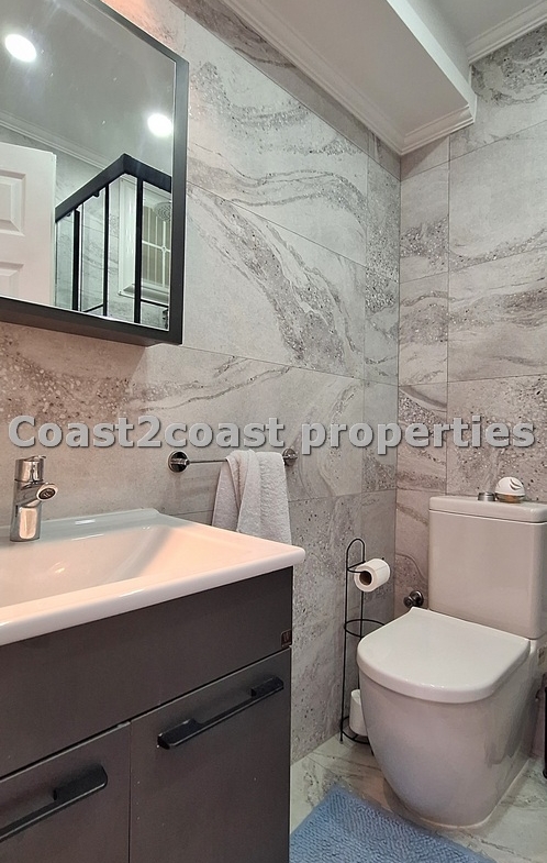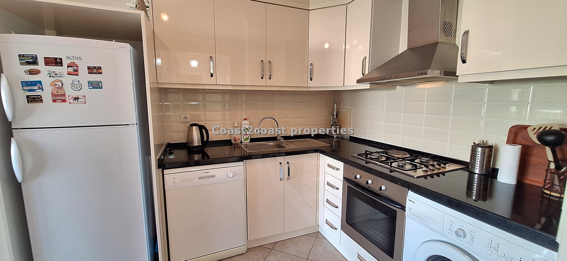 Adjacent to the this area and on the same level we have 2 double bedrooms and a shared shower room. There is one large bedroom to the front with it’s own access to the same large terrace area as the lounge. This room is very spacious with twin beds, fitted wardrobes and chest of drawers. The other bedroom , again has twin beds and fitted wardrobes and a dressing table. There is also a sunny balcony off this bedroom.