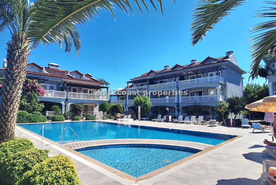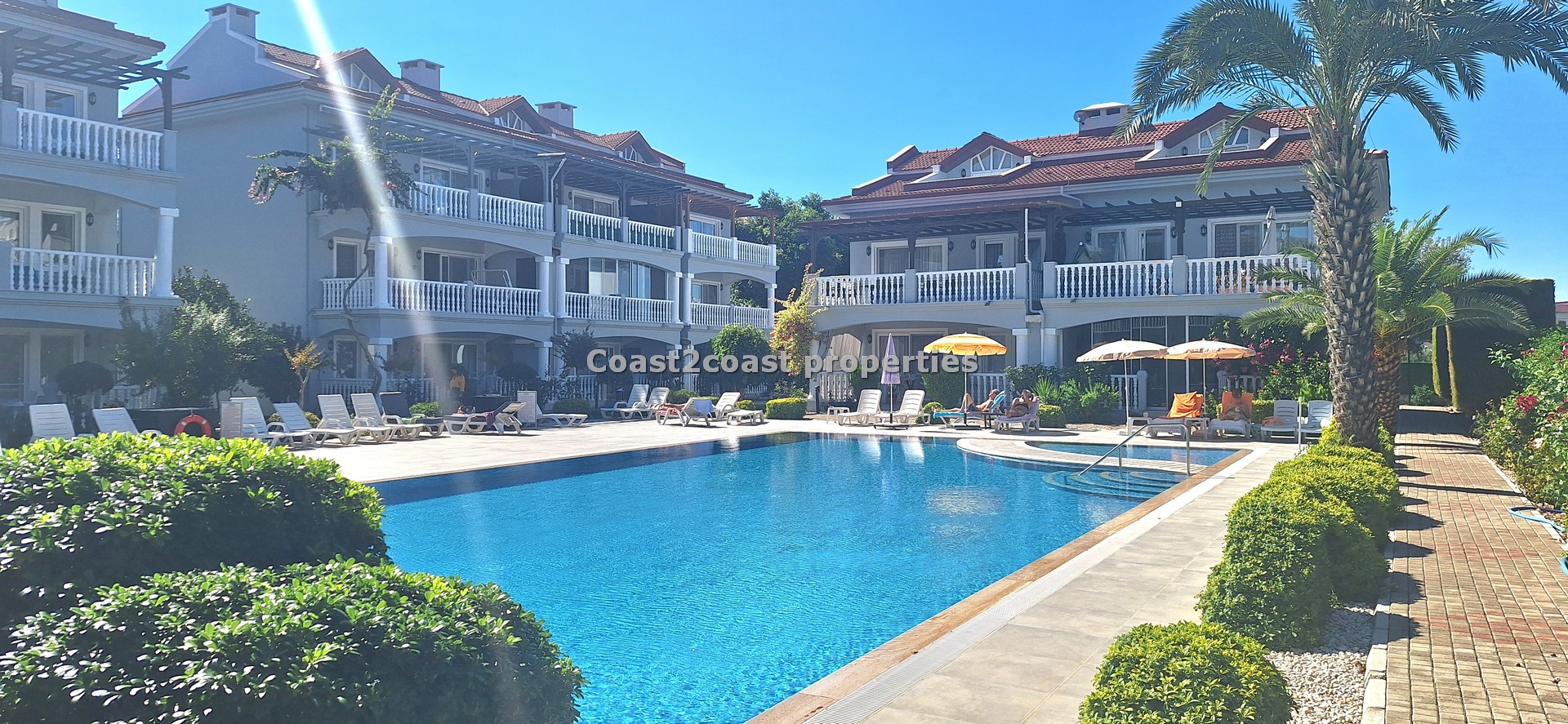 The gardens are mature with many types of trees and flowers adding to the beauty. Palm trees are everywhere! The grounds are maintained 12 months of the year which is very important as many Properties for sale in Fethiye and Calis with complex’s only look after the sites for the summer season. Summer apartment looks fantastic all year round! The total amount of apartment we have are 28.