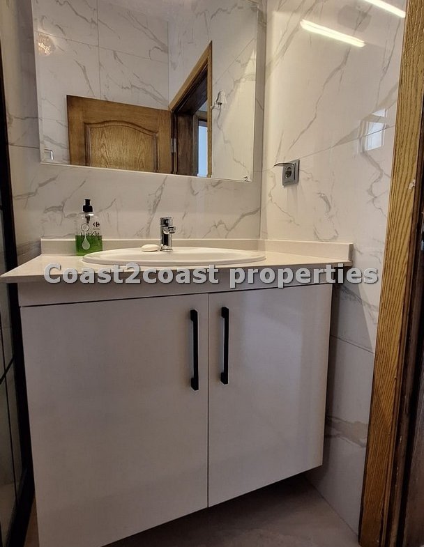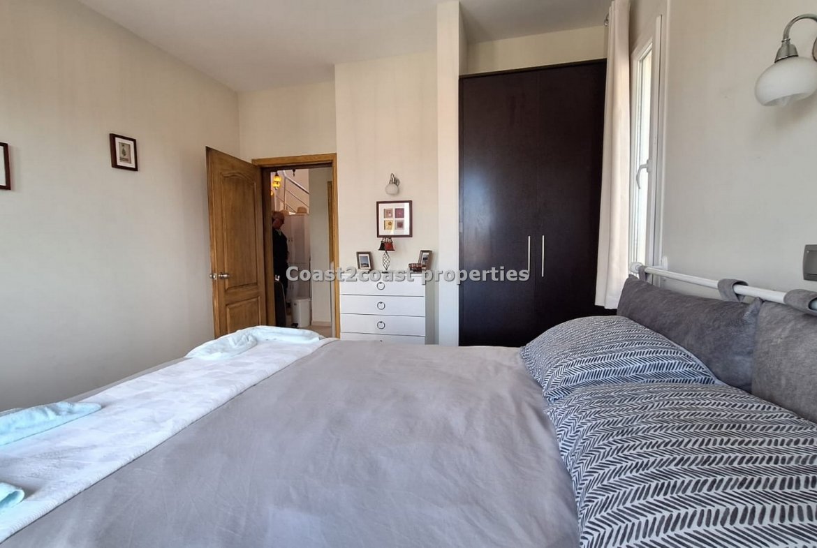 Two bedrooms are on this level. The larger one has the balcony to the front also overlooking the pool and gardens. It has fitted wardrobes and comes fully furnished also. The second bedroom again fitted wardrobes and furnished with a balcony to the back of the property. Both these rooms share a shower room that is stunning with a vanity unit and designer shower cubicle. Finished of to a high standard!