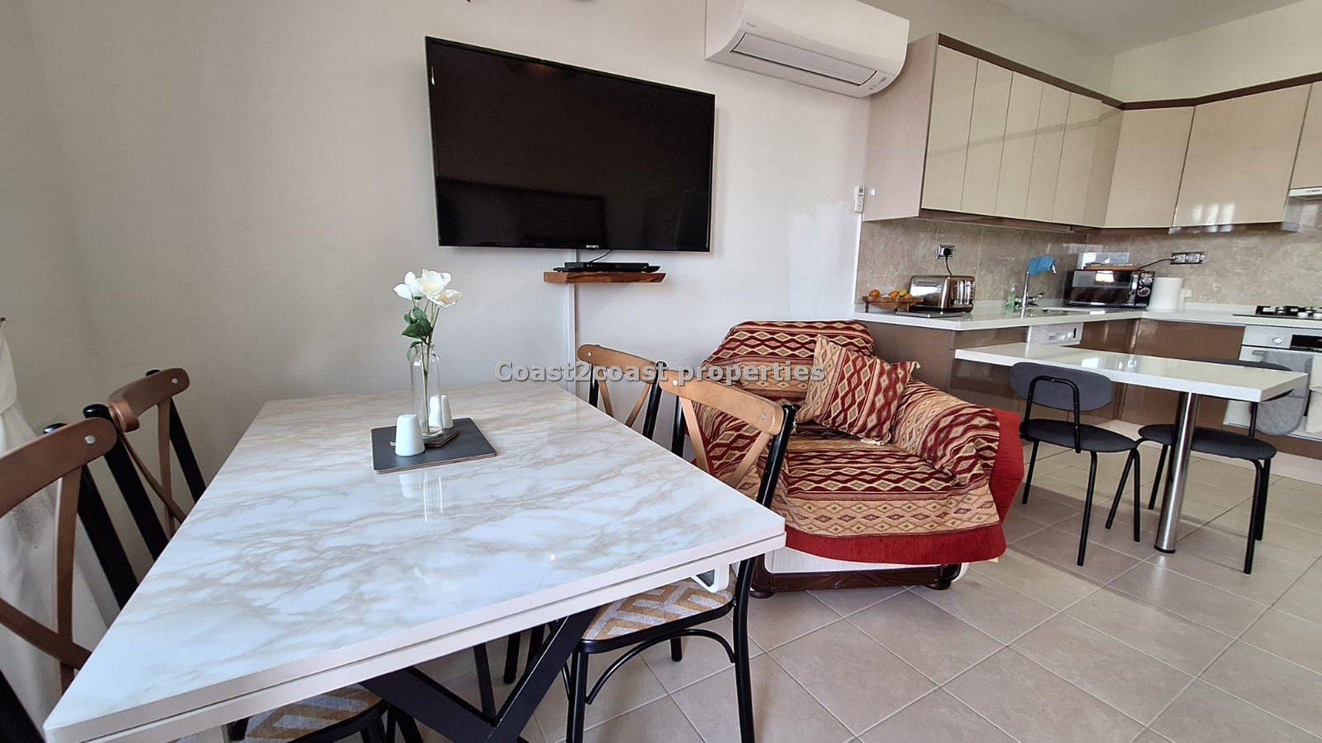 This property in Turkey is a turn key and ready to go. It is equipped with new furnishings throughout. Even some of the kitchen equipment is still under guarantee.