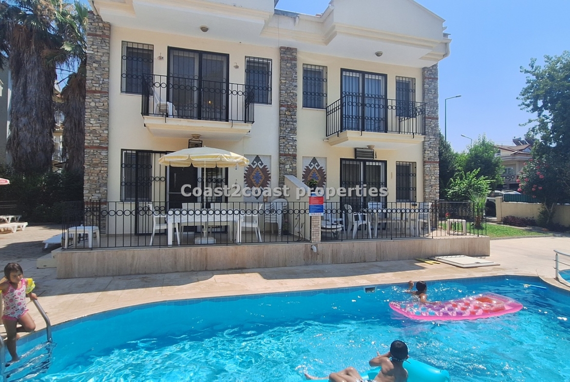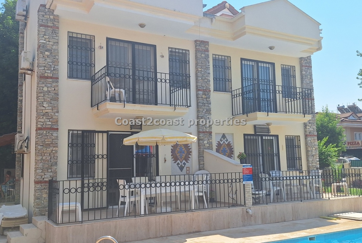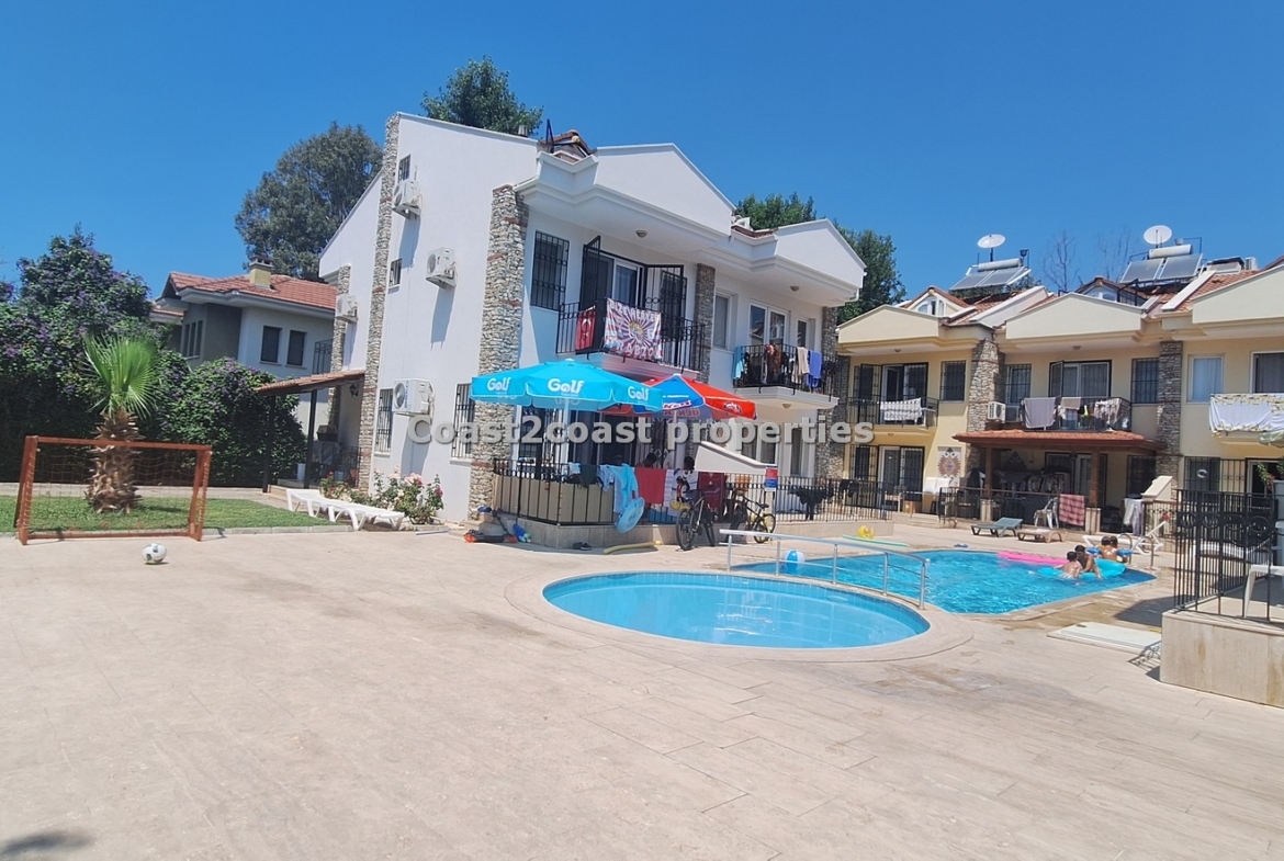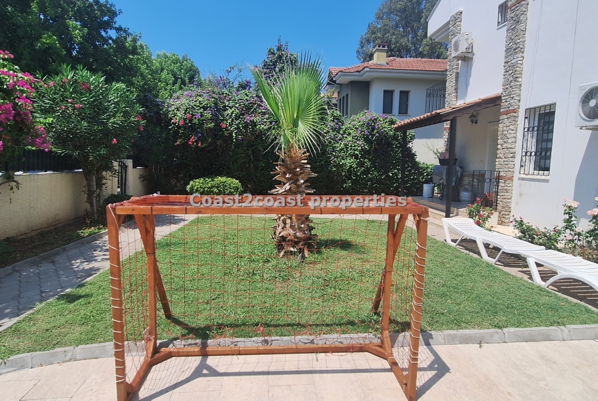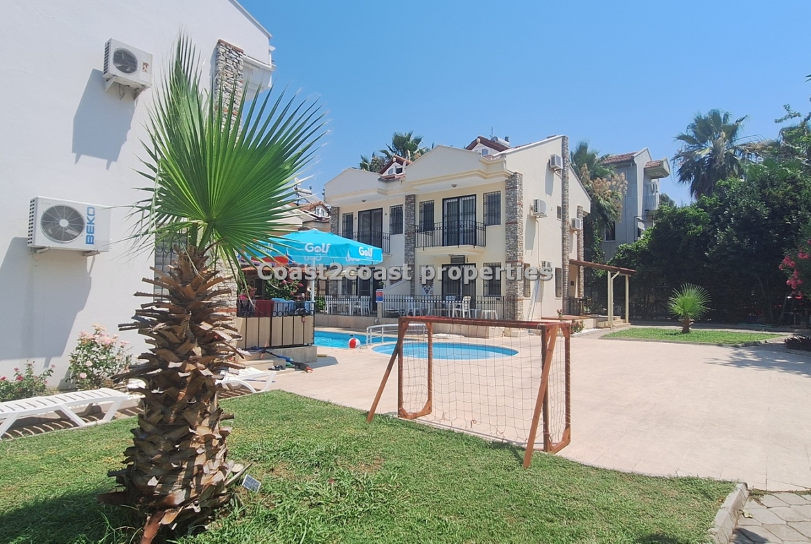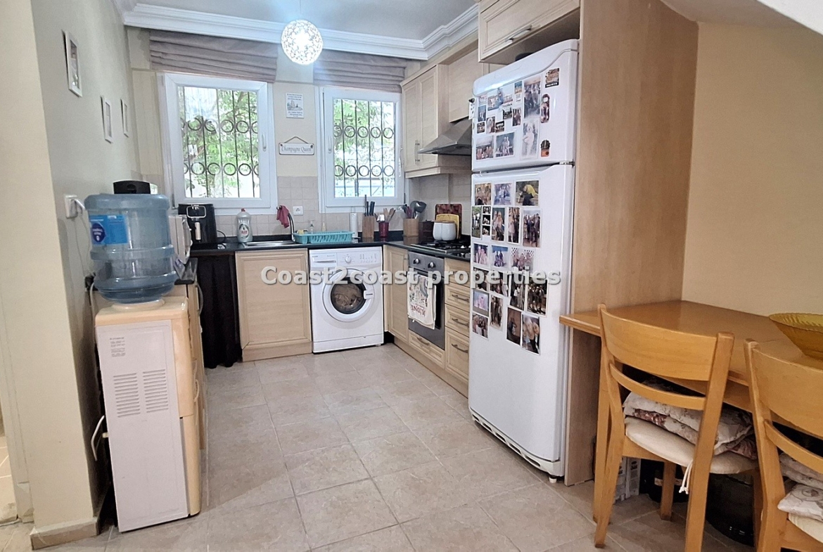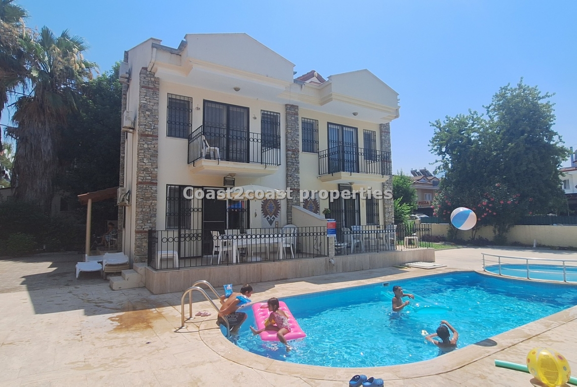 The villa as stated is in one of the main locations in this area. It is in the heart of everything! The main beach is Calis beach 8 minutes walk. Calis has so many bars and restaurants now you are spoilt for choice. Fethiye which is not far on the local bus service is a must to visit also. It has a great promenade which you can also walk to from Calis. It is quite outstanding scenery on the way. There is also a cycle lane that takes you from this resort to Fethiye taking you through beautiful parks and sea views all the way. Calis has an aquapark, Promenade, open market area, Tennis courts, beach and all walking distance from this villa for sale in Turkey.