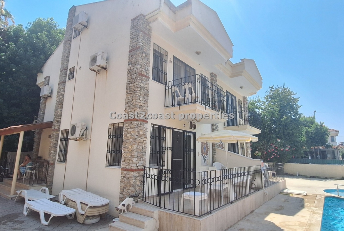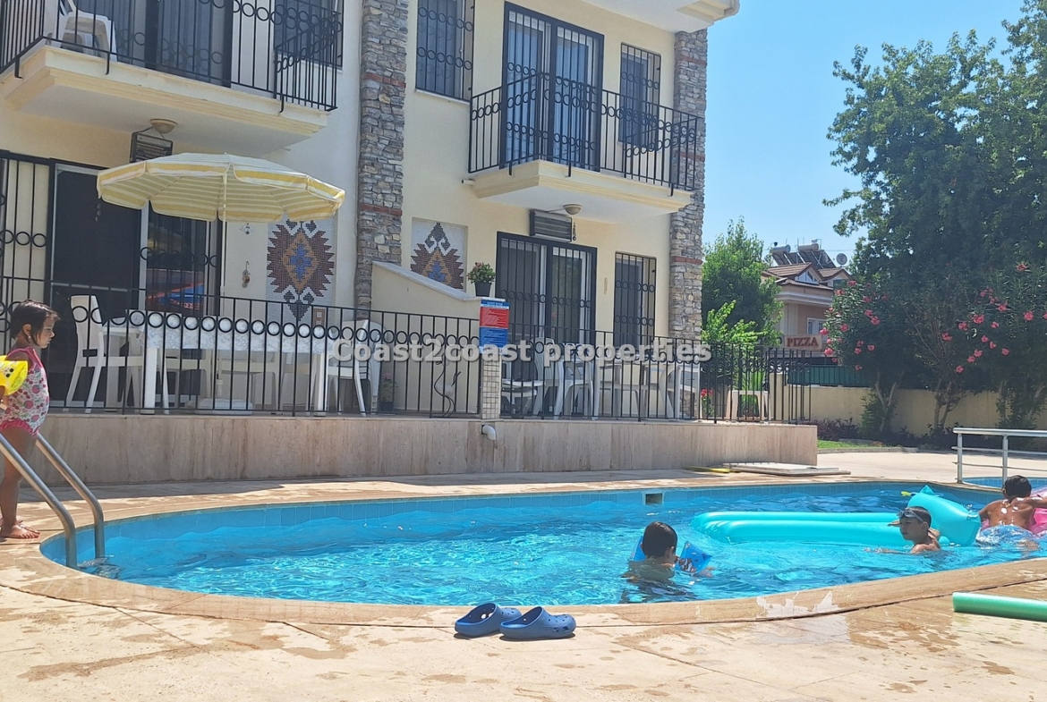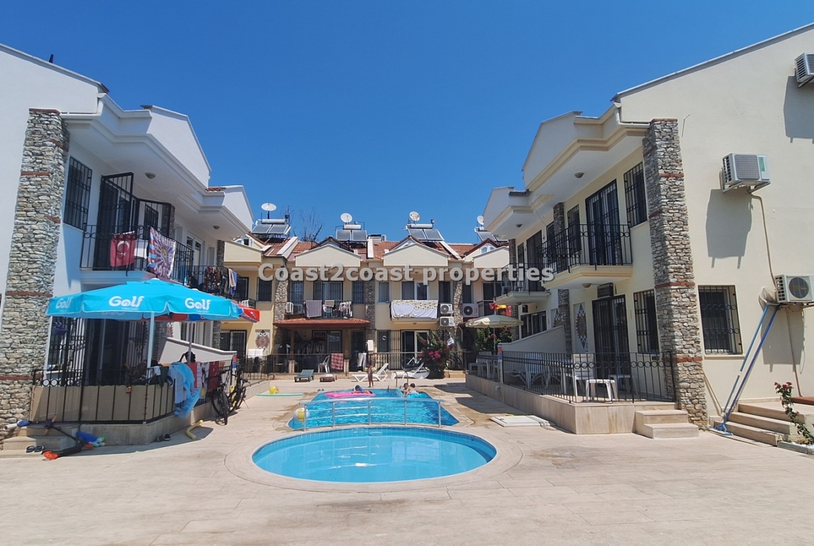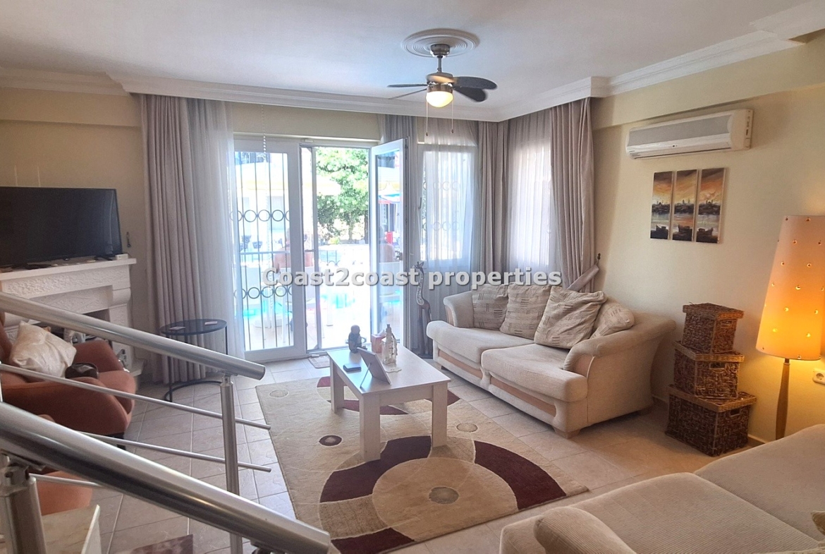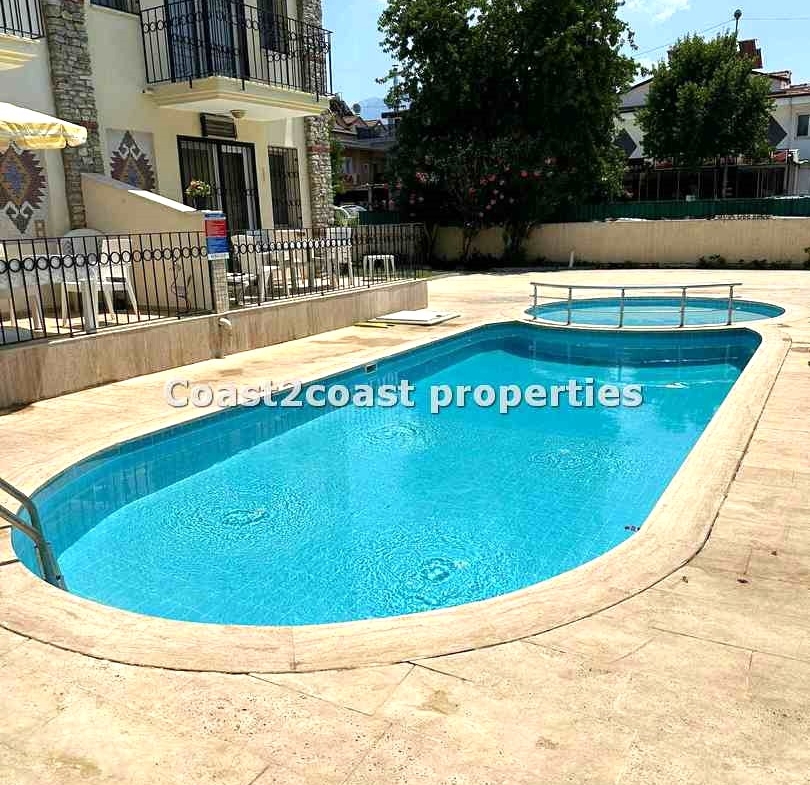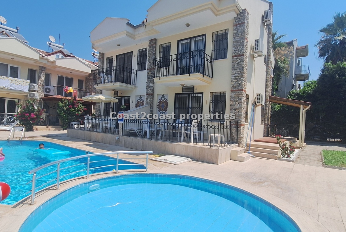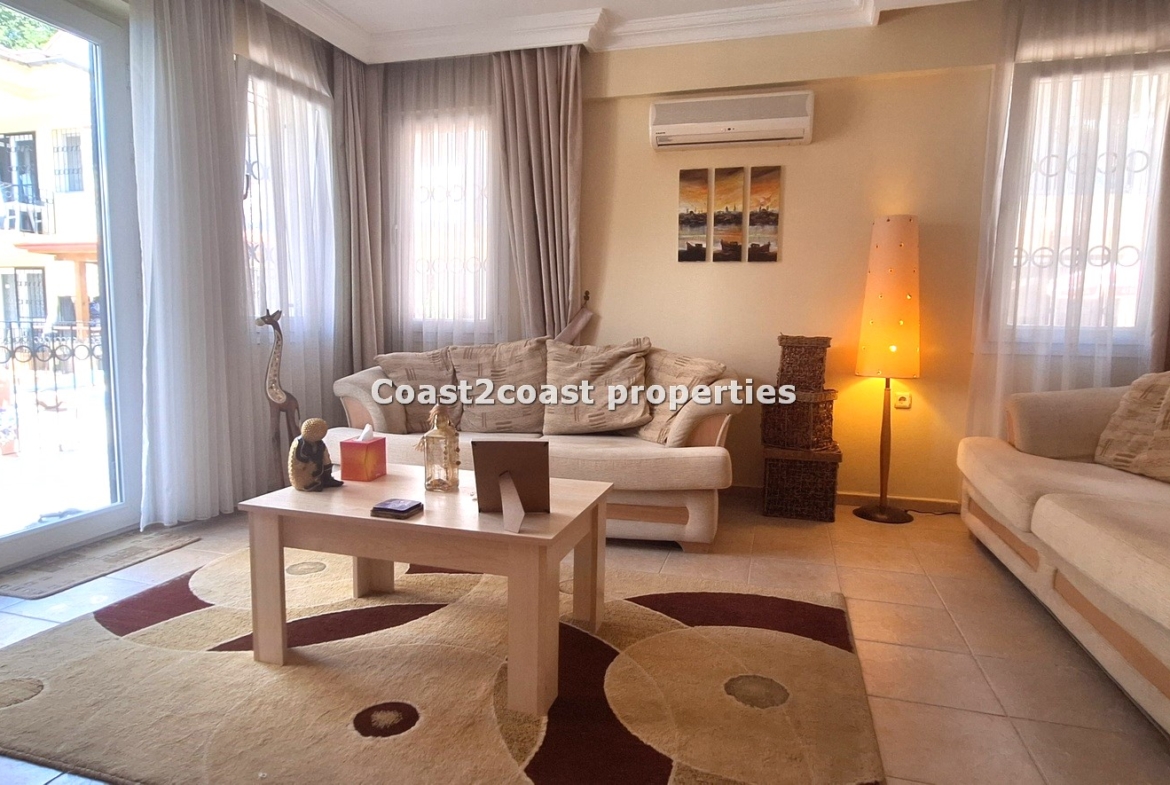 The villa as stated is in one of the main locations in this area. It is in the heart of everything! The main beach is Calis beach 8 minutes walk. Calis has so many bars and restaurants now you are spoilt for choice. Fethiye which is not far on the local bus service is a must to visit also. It has a great promenade which you can also walk to from Calis. It is quite outstanding scenery on the way. There is also a cycle lane that takes you from this resort to Fethiye taking you through beautiful parks and sea views all the way. Calis has an aquapark, Promenade, open market area, Tennis courts, beach and all walking distance from this villa for sale in Turkey.