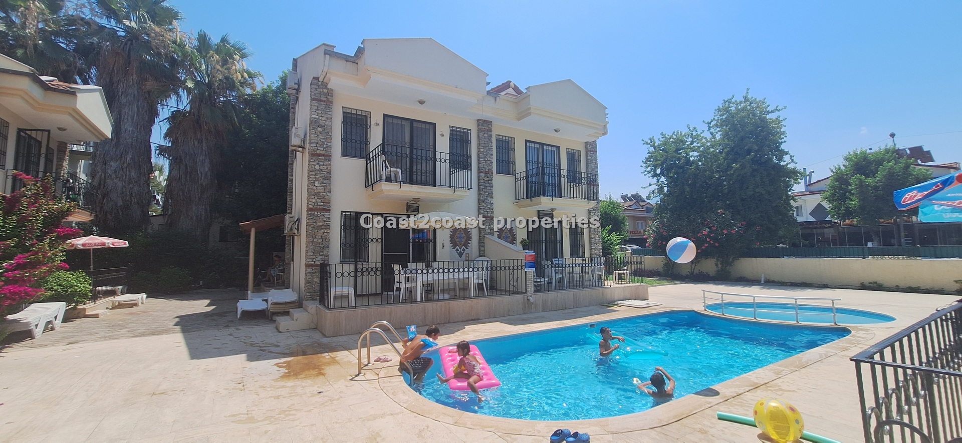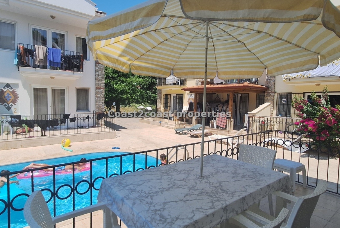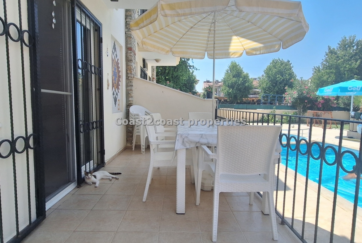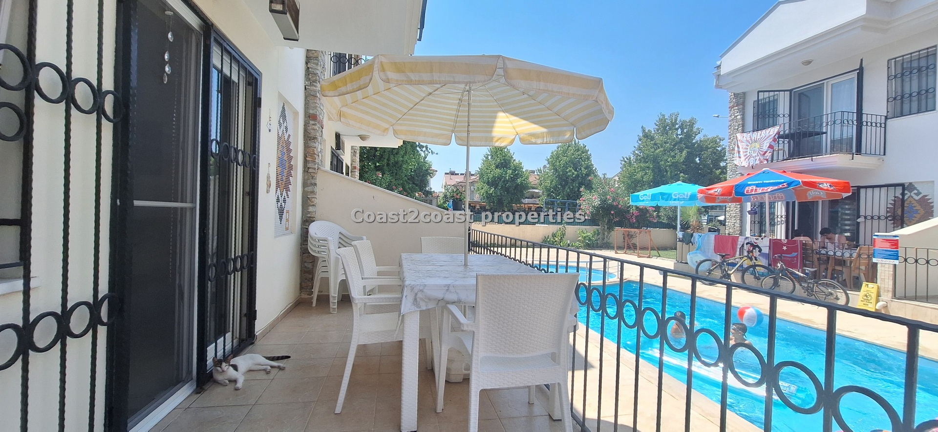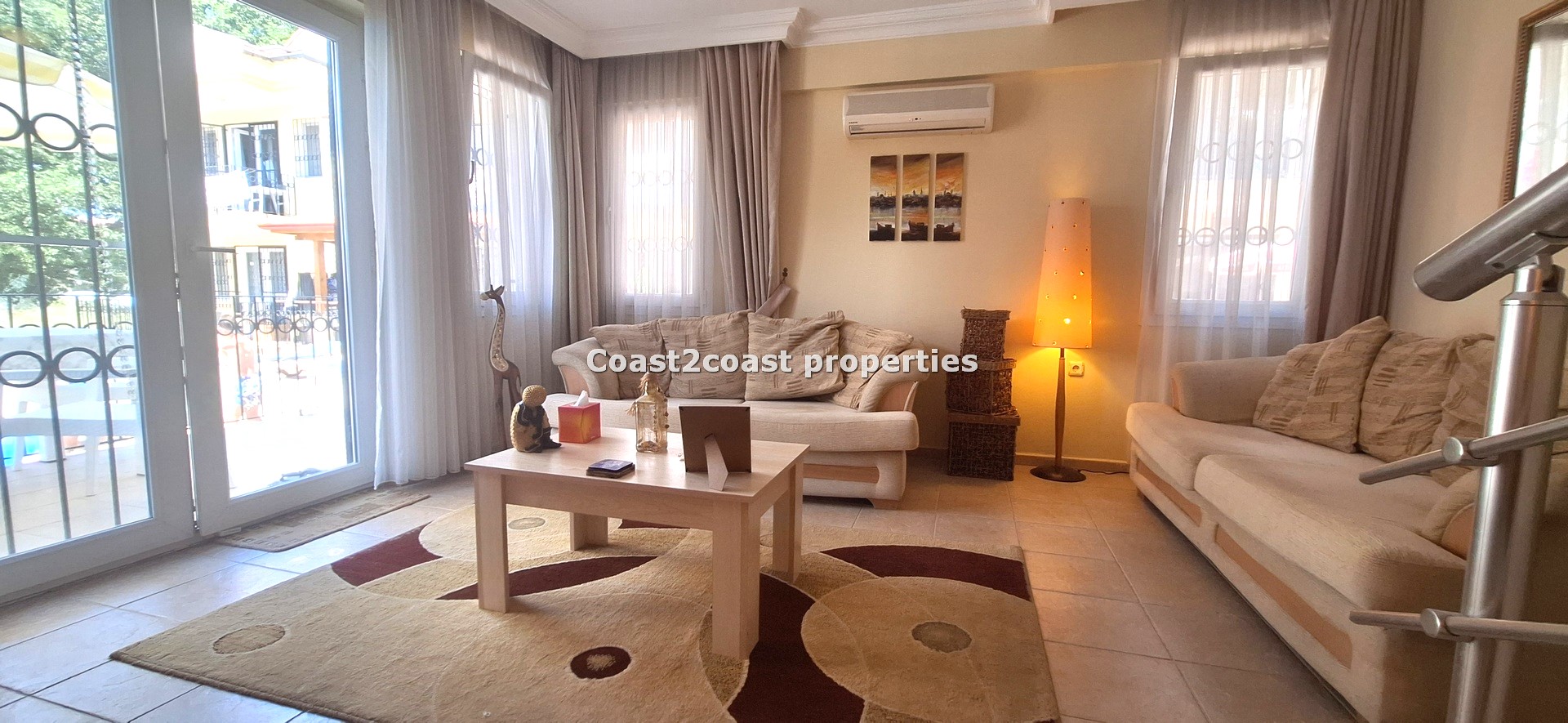 The villa as stated is in one of the main locations in this area. It is in the heart of everything! The main beach is Calis beach 8 minutes walk. Calis has so many bars and restaurants now you are spoilt for choice. Fethiye which is not far on the local bus service is a must to visit also. It has a great promenade which you can also walk to from Calis. It is quite outstanding scenery on the way. There is also a cycle lane that takes you from this resort to Fethiye taking you through beautiful parks and sea views all the way. Calis has an aquapark, Promenade, open market area, Tennis courts, beach and all walking distance from this villa for sale in Turkey.