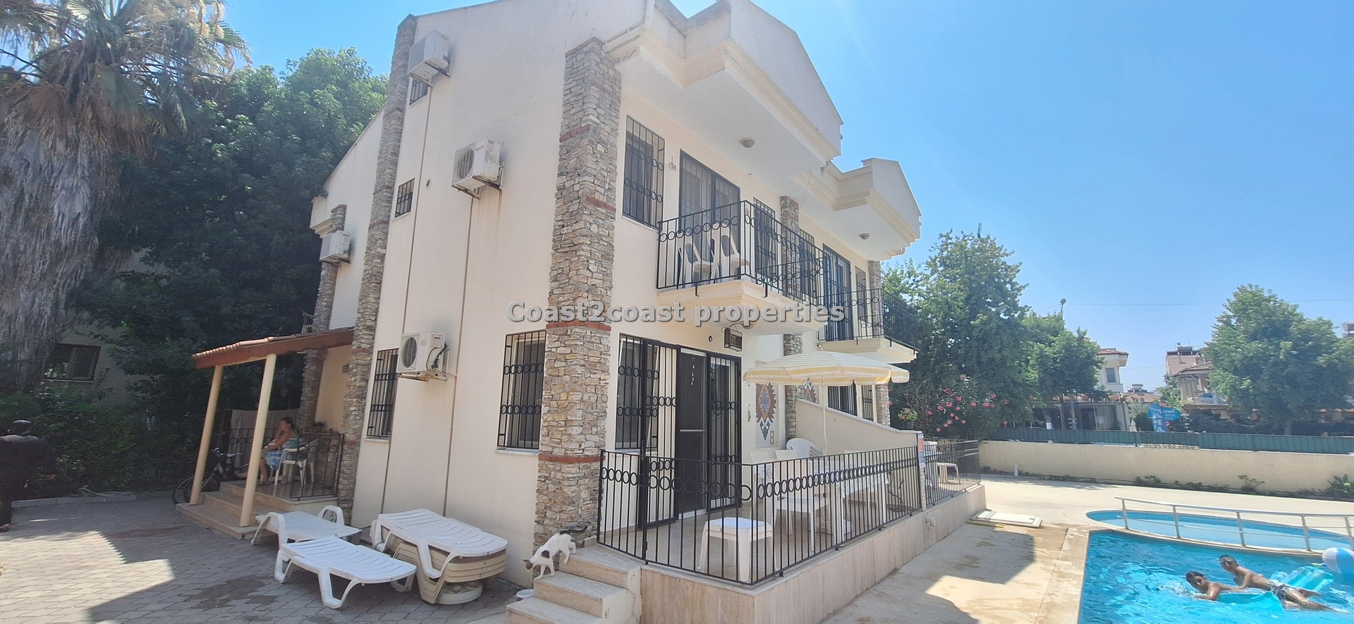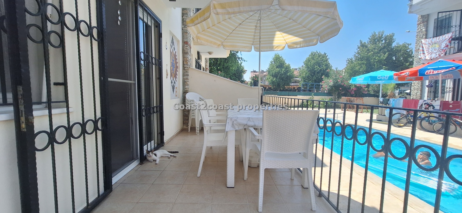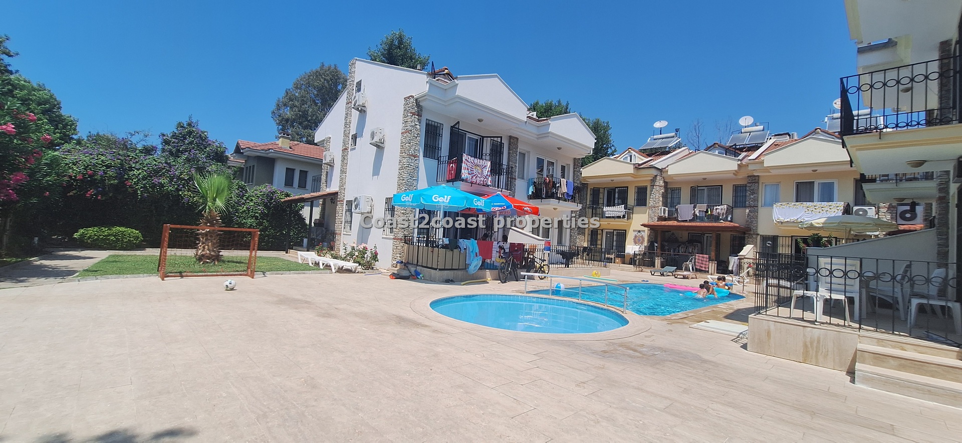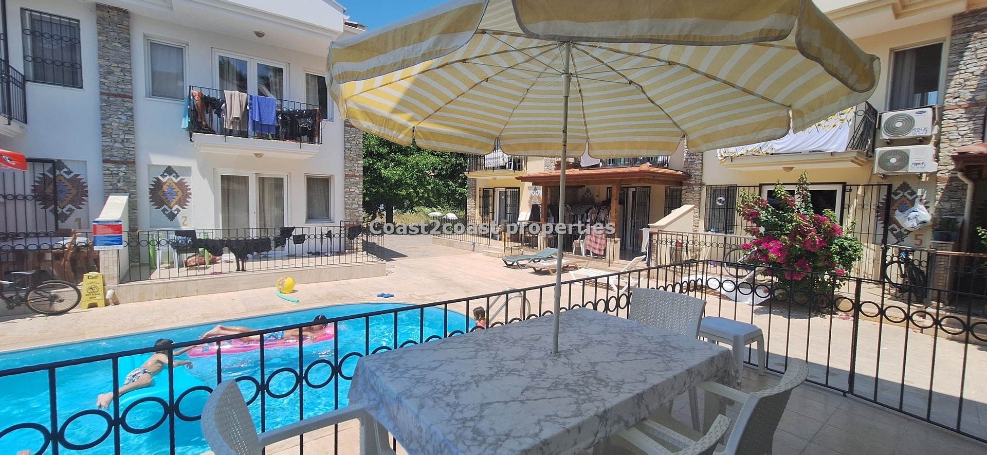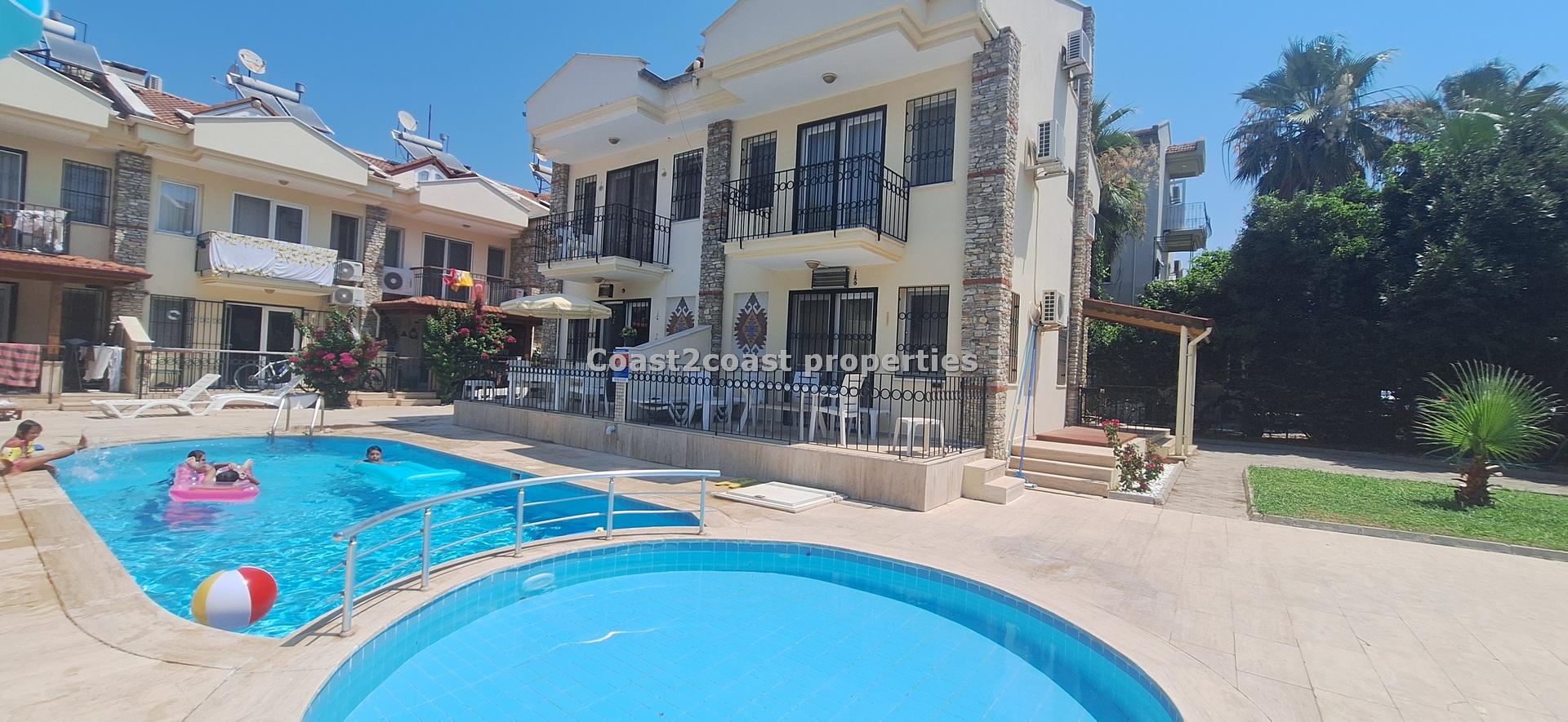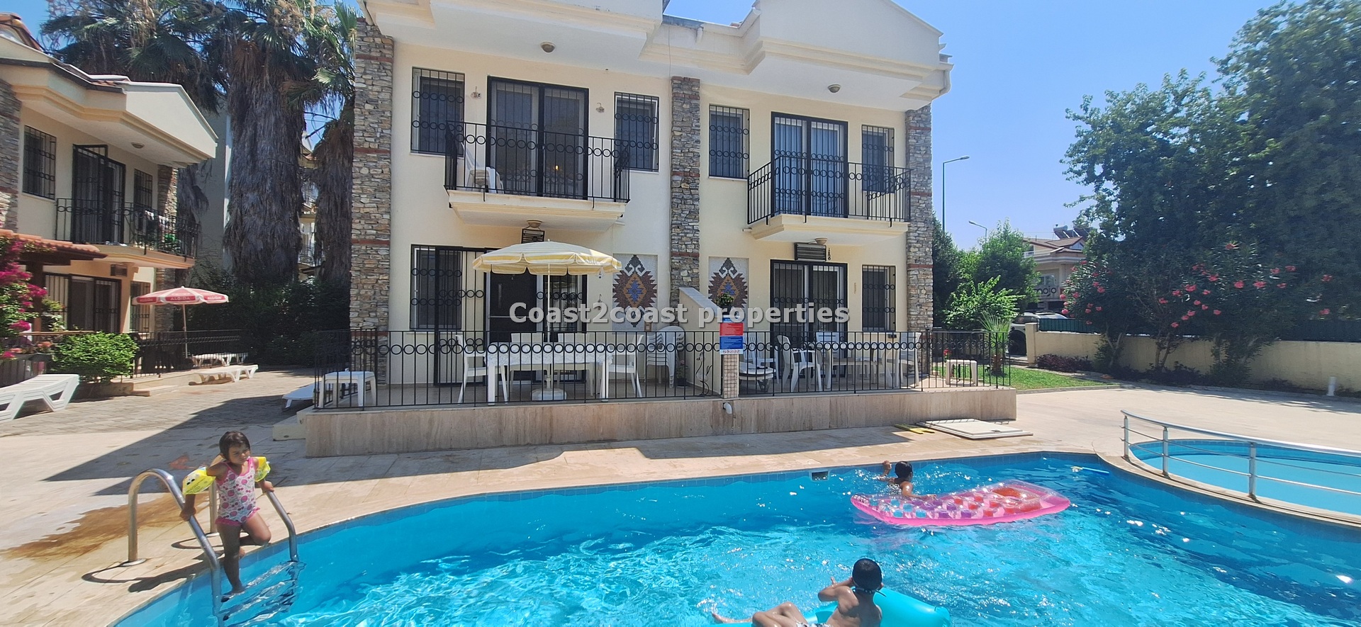 The villa as stated is in one of the main locations in this area. It is in the heart of everything! The main beach is Calis beach 8 minutes walk. Calis has so many bars and restaurants now you are spoilt for choice. Fethiye which is not far on the local bus service is a must to visit also. It has a great promenade which you can also walk to from Calis. It is quite outstanding scenery on the way. There is also a cycle lane that takes you from this resort to Fethiye taking you through beautiful parks and sea views all the way. Calis has an aquapark, Promenade, open market area, Tennis courts, beach and all walking distance from this villa for sale in Turkey.