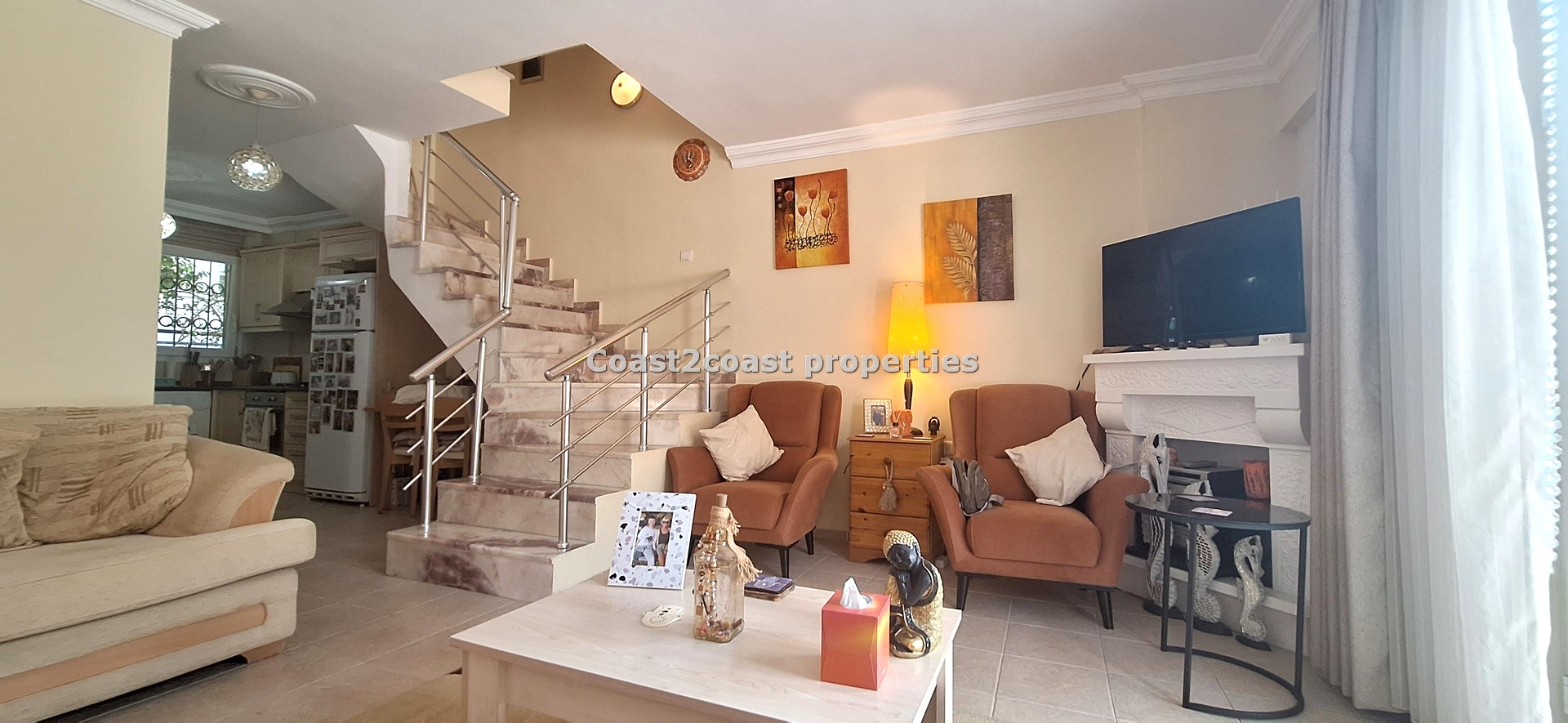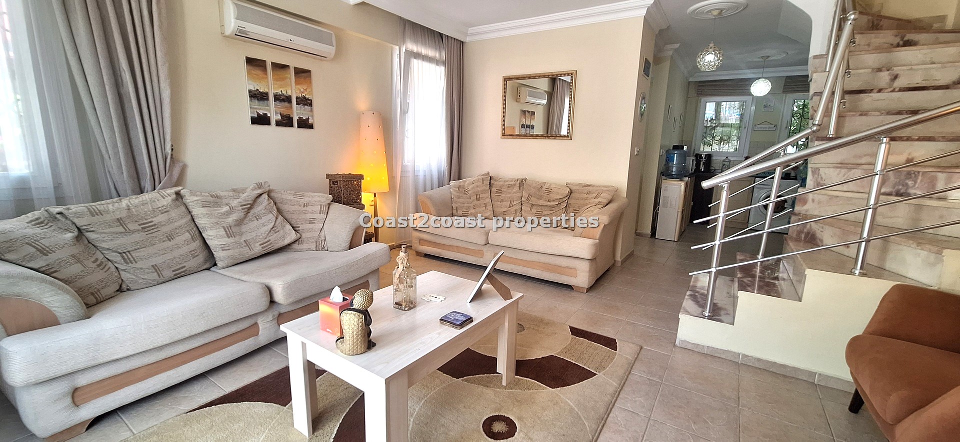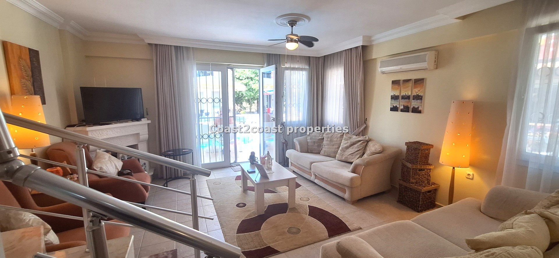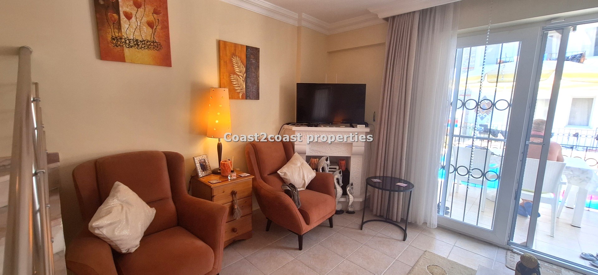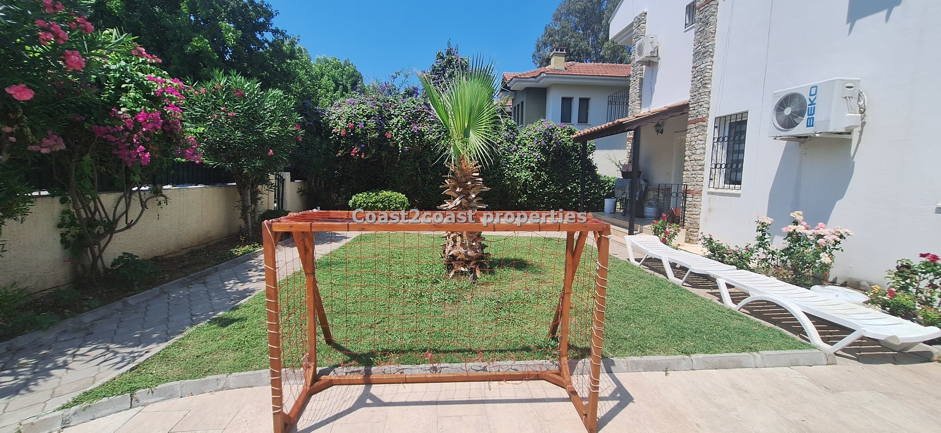 The villa as stated is in one of the main locations in this area. It is in the heart of everything! The main beach is Calis beach 8 minutes walk. Calis has so many bars and restaurants now you are spoilt for choice. Fethiye which is not far on the local bus service is a must to visit also. It has a great promenade which you can also walk to from Calis. It is quite outstanding scenery on the way. There is also a cycle lane that takes you from this resort to Fethiye taking you through beautiful parks and sea views all the way. Calis has an aquapark, Promenade, open market area, Tennis courts, beach and all walking distance from this villa for sale in Turkey.