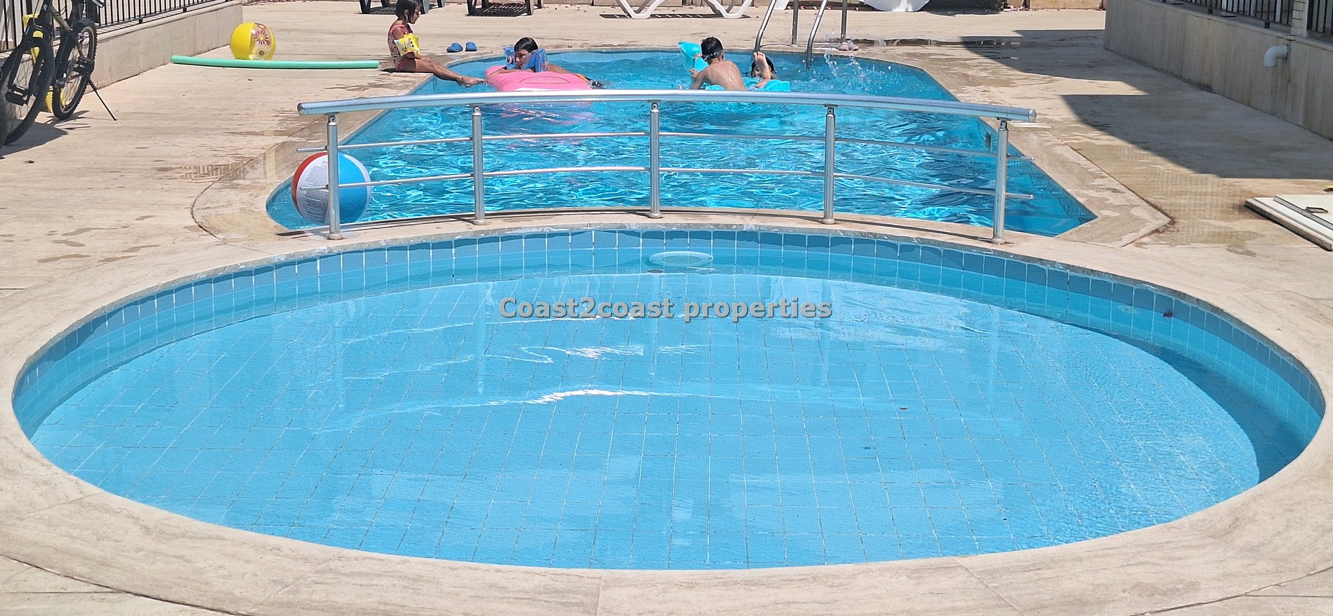 We have a Semi Detached 3 bedroom, 4 toilet villa which has three levels. 9 Villas in total so not a massive complex. They all share lovely gardens and a swimming pool. They also all have private entrances!