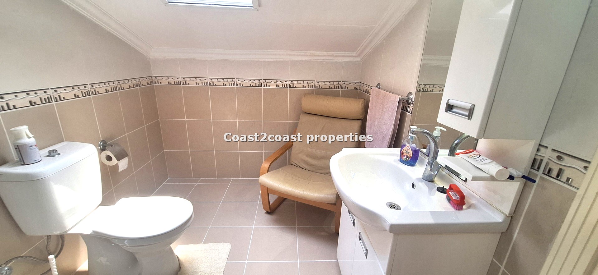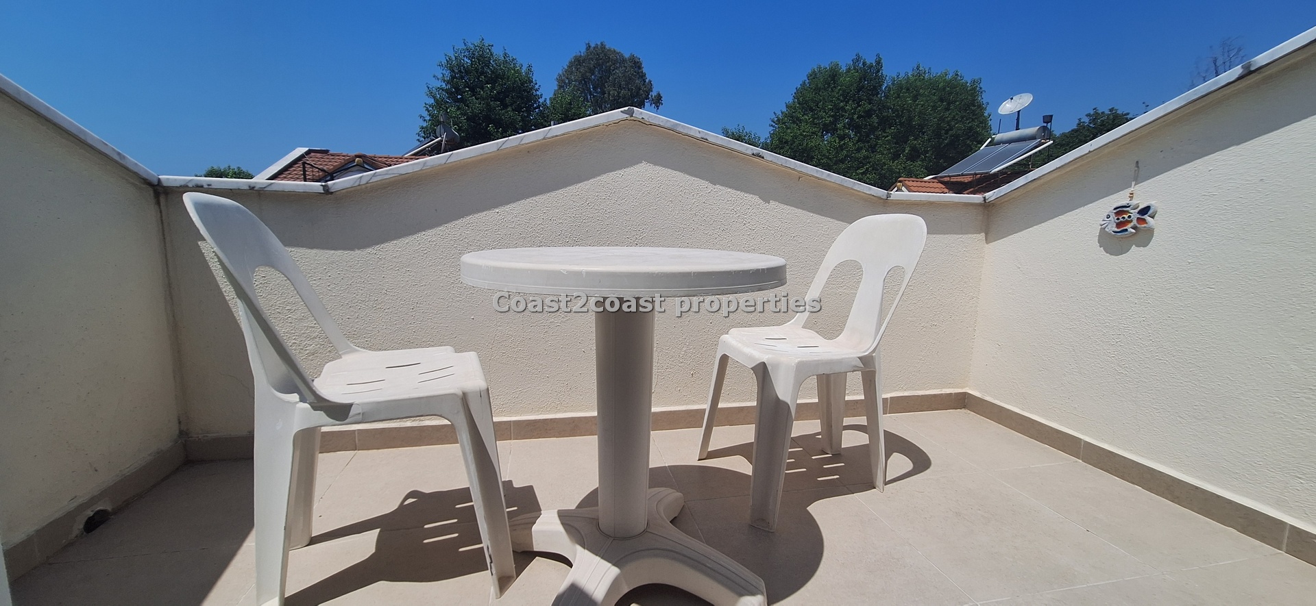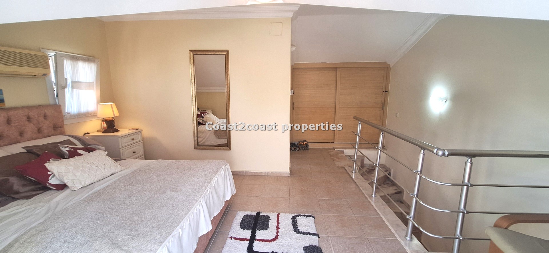 We then reach the top floor which is beautiful. A large open bedroom with a roof terrace! This is very private and walled off so ideal for sunbathing. The views over Calis are excellent from this terrace. Alternatively relax and watch the stunning sunsets Calis has to offer! Again we have big furnishings and plenty of storage all inclusive! The en suite is again a good size with a shower cubicle, vanity unit and tiled reflecting the other shower rooms. This villa for sale in Turkey is very deceiving and offers great space within!